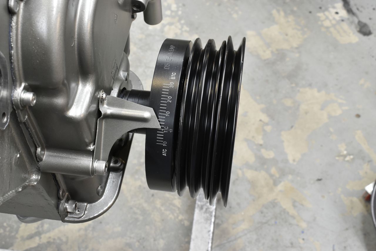 I also highlighted the timing scale on the damper. The trick is to paint (epoxy paint) the damper and let it cure for a couple days then use a white paint pen and dab it on. Then take a clean piece of paper towel folded flat (not bunched up) and wet in IPA to lightly wipe the excess off.