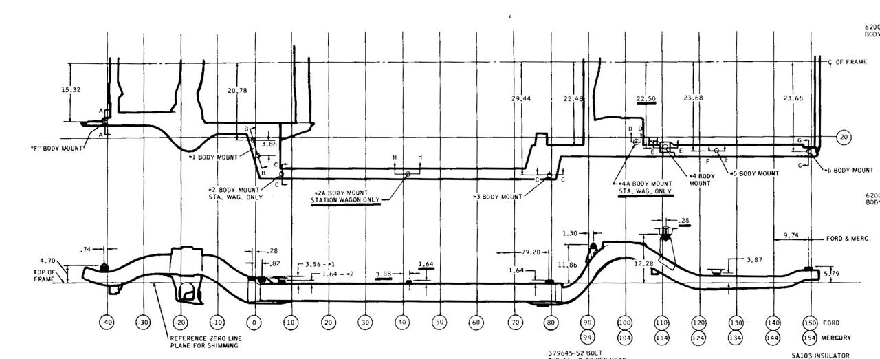 This "should" work for '65 and '67s Fords too, but I don't have the frame charts for those years so I can't be certain without looking at those dimensions. Even the 1966 and 1968 frame charts (non convertible and wagon) have some dimensions slightly different, but it's relatively minor.