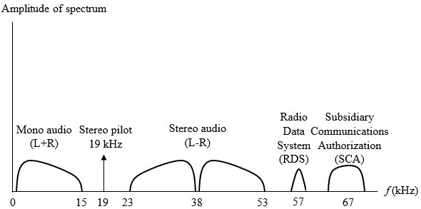 Here's a breakdown of the typical FM station bandwidth (all 75 KHz). Here's a little explanation of it. If you had an old monaural pocket FM radio it would utilize the first 15 KHz of the total information on a single station spectrum because the left + right audio information is contained there. This also applies to stereo receivers with too low a signal to activate the stereo decoder, all they use at that point is first 15 KHz. The 19 KHz pilot is what the stereo decoder looks for to activate. If the signal is too weak, the decoder turns off and you can still hear the FM station, it just will be monaural. Also there are still a couple FM stations, mostly talk radio that do not transmit in stereo, so there's no 19 KHz tone present and the stereo decoder stays off.