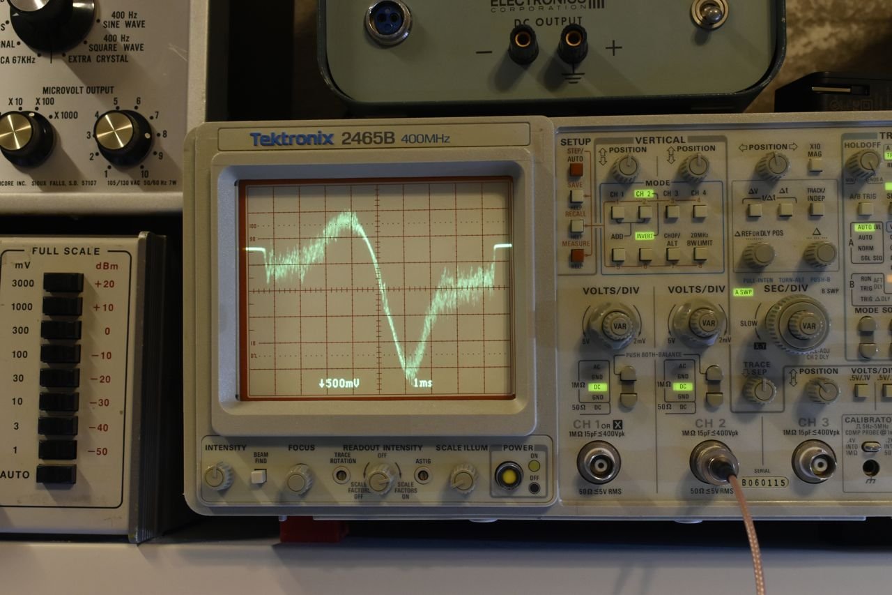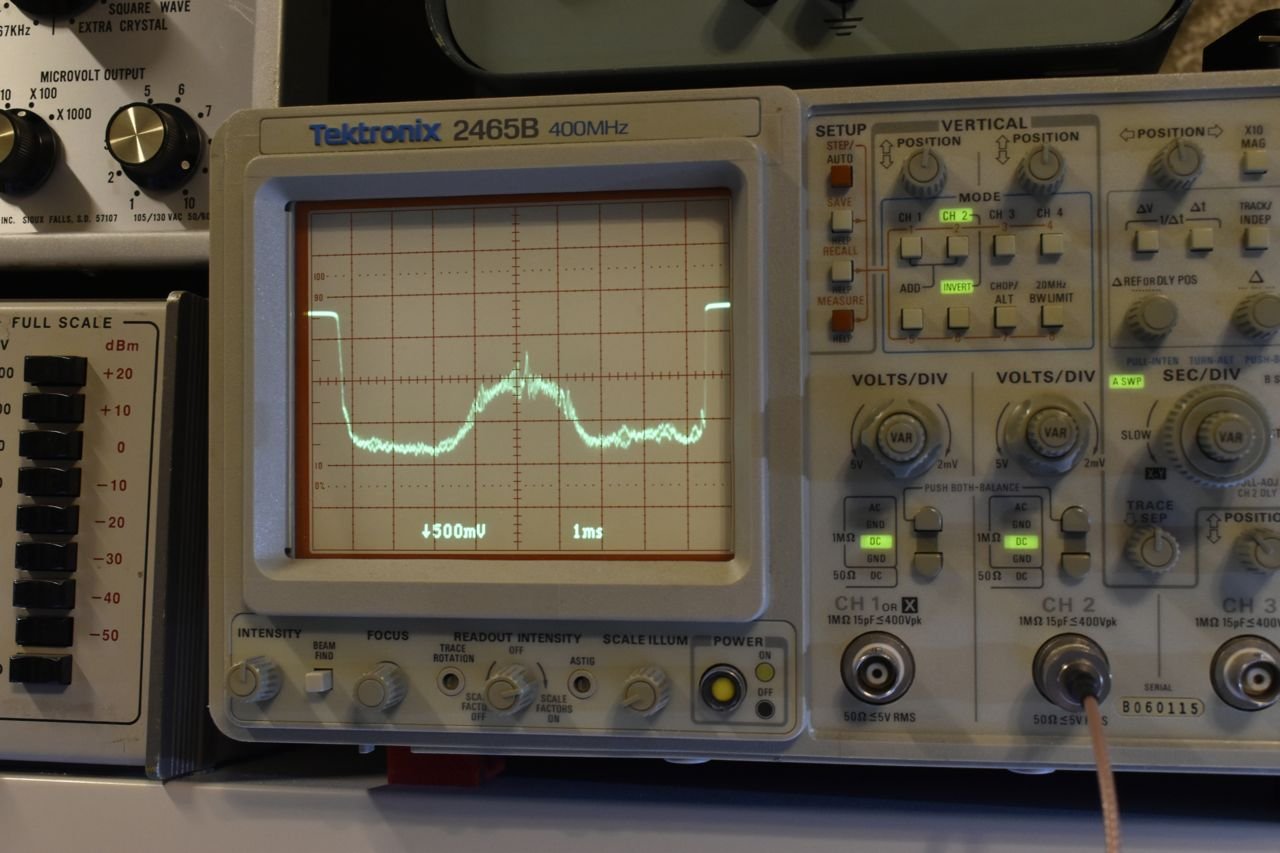 This is the detector waveform, again close to textbook, just a tad off but it's as close I could get it and centre the 10.7 MHz marker.