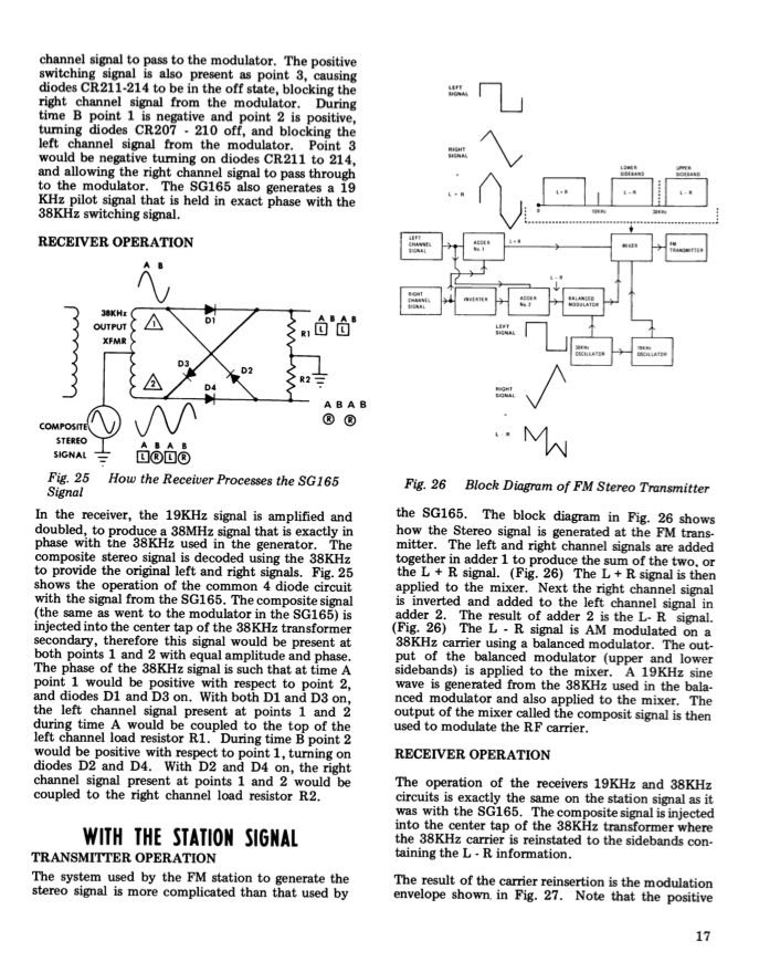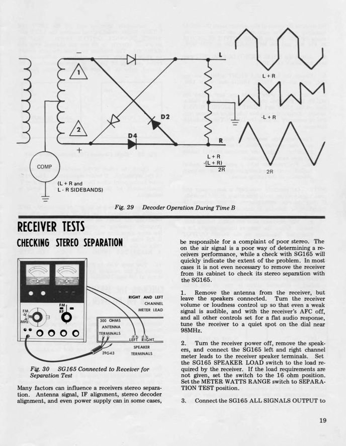 At this point, the FM radio front end was done, but I needed to adjust the stereo decoder. But first here's a quick review of how stereo actually works. This is from Sencore SG-165 manual. It's simple to understand so why not have a look.