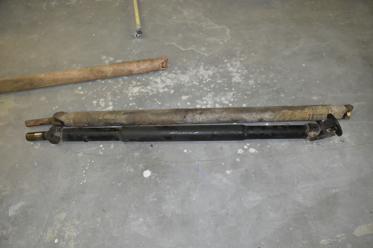 Here's my Caprice Classic propshaft next to a spare 3rd gen galaxie propshaft. I'm hoping to save a few bucks by using the galaxie prop shaft, it will need to be slightly shortened and balanced. Depending on the Cardan joints used between the Ford and Chevrolet I might have them take the end off the transmission side of the Chevrolet propshaft and weld that onto the Ford propshaft. That way I can use the Caprice's front Cardan/U joint for the front and the galaxies Cardan/U joint for the rear, rather than some oddball Cardan joint to mate the Turbo 400 yoke to the Ford propshaft.
