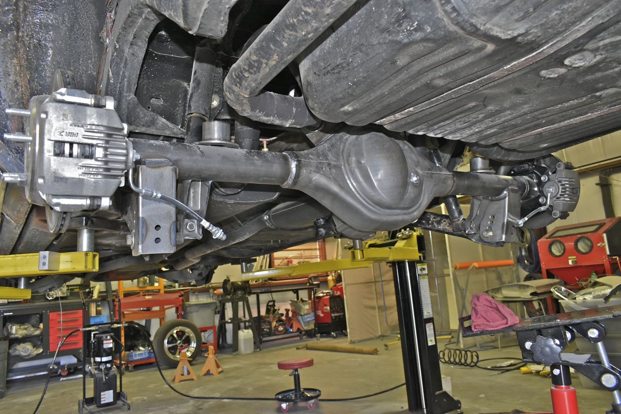 Now the brain cell exercising really begins as Moser Engineering (the place that made me the Ford 9" to fit) would not deviate from the manufacturing as a direct replacement to the car. Meaning they copied the idiotic pinion angle as the old axle.