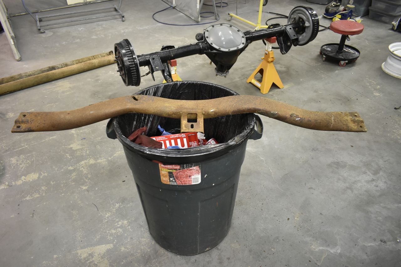 This is the transmission cross member. It could hold up a Detroit Diesel never mind a transmission. On a side note, I was surprised how well the old axle cleaned up with just some Simple Green in a bottle, a small nylon brush and a rag. I painted and replaced everything I could on it 20+ years ago.