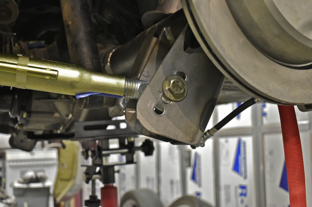 Moser put an assortment of holes for the lower control arm. Why? Dunno, but I played with the control arm in different locations and measured pinion angle stability.