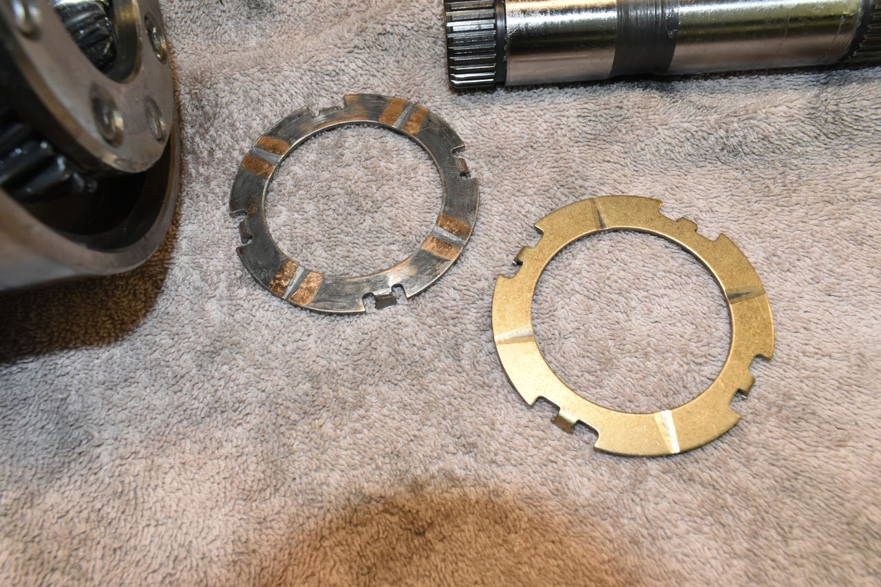 Aside from needing all new seals, gaskets and plastic pieces, these were the other parts that were worn down. These are the thrust washers in the planetary assemblies. There are two of these in the TH-400. Sad part is GM used torringtons for every other spot except these. Had they converted these this transmission would be fully rollerized. The reason why these wore down in such short miles on the transmission is because of the taper cut on the planetary gears which causes the gears to be either sucked together or pushed away depending on rotation. Either way, with a high torque differential caused by an engine that really puts out and a rear axle ratio of 2.73:1 coupled to a mass of 5000 lbs those washers end up getting mashed between two rotating parts of different speeds very hard. Hence the wear.
