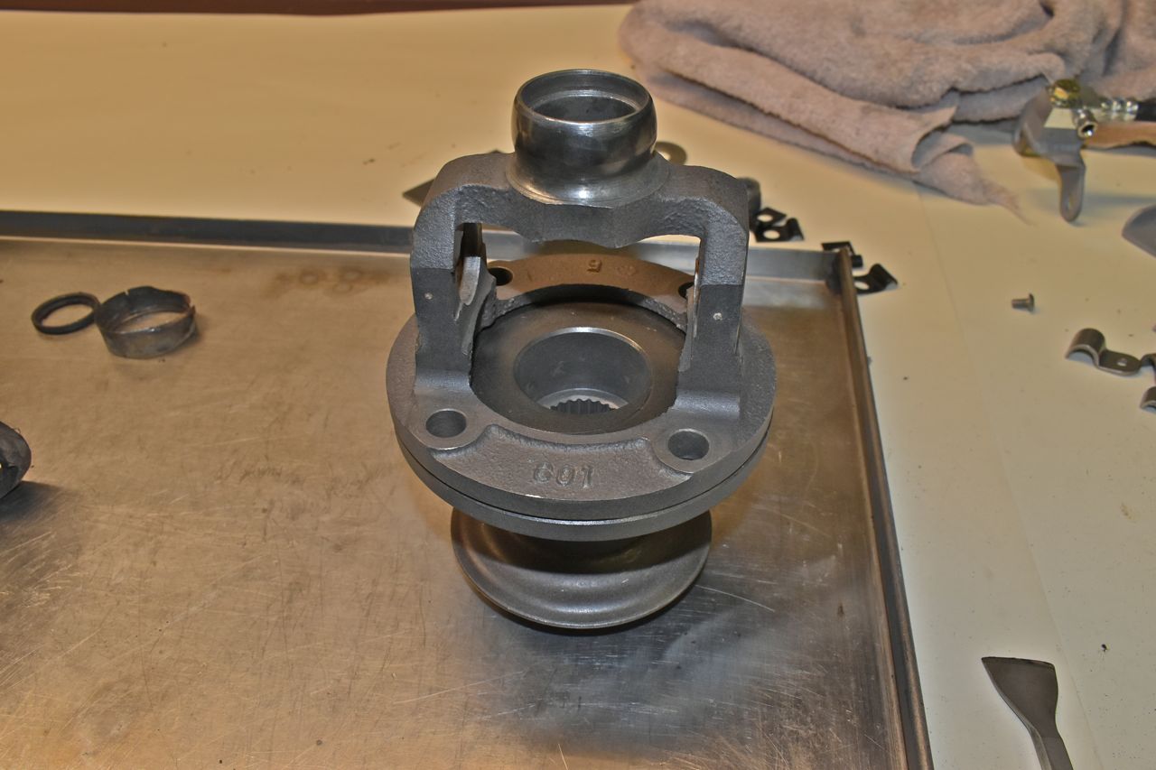 I pillaged this old hose and the propshaft end replete with a CV joint from a 1969 Lincoln in the junkyard.