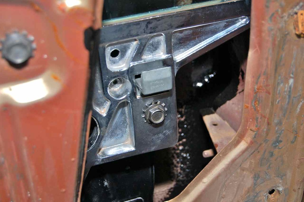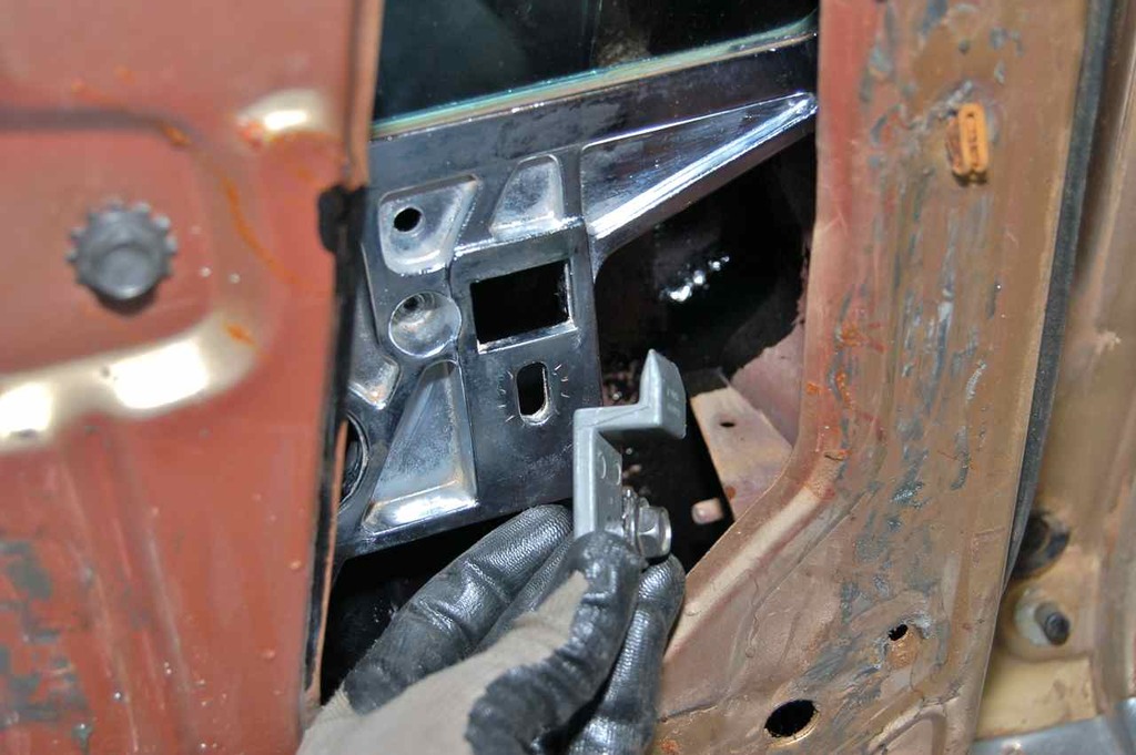 This is the inboard upper stop other half and support bracket. The bracket snakes up in the door shell.