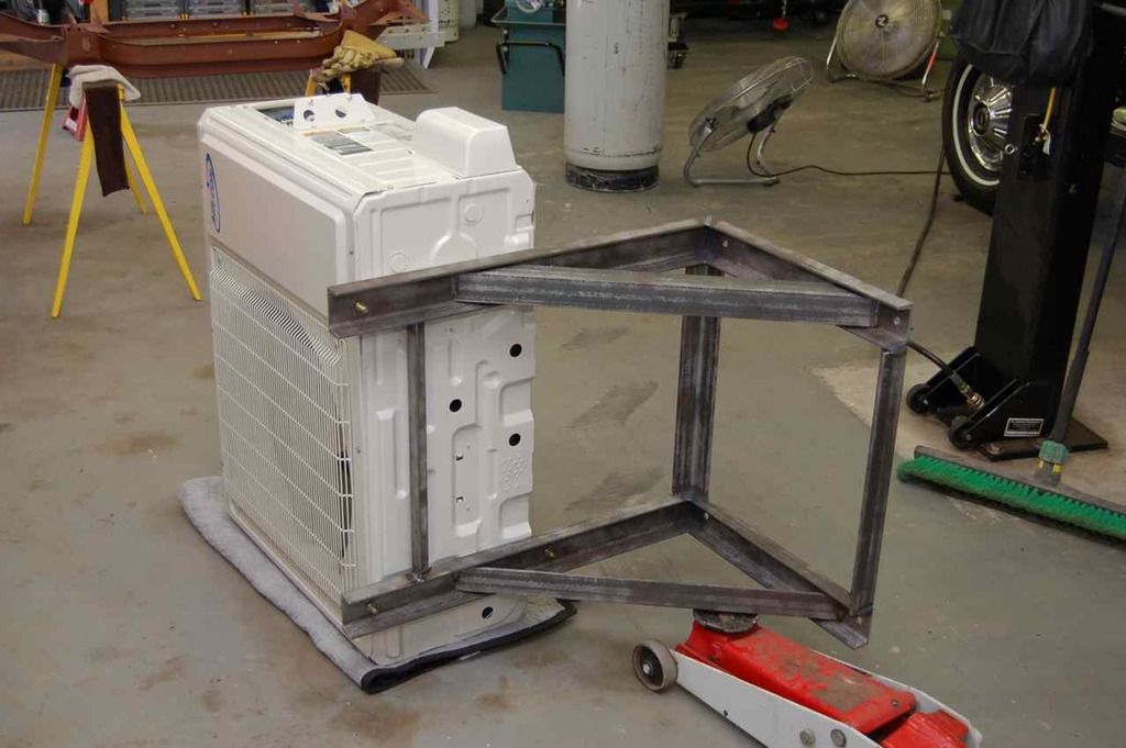 The outdoor unit I elected to hold off the ground and the required distance away from the exterior wall. So I made a heavy duty bracket that will hold it up and off the wall.