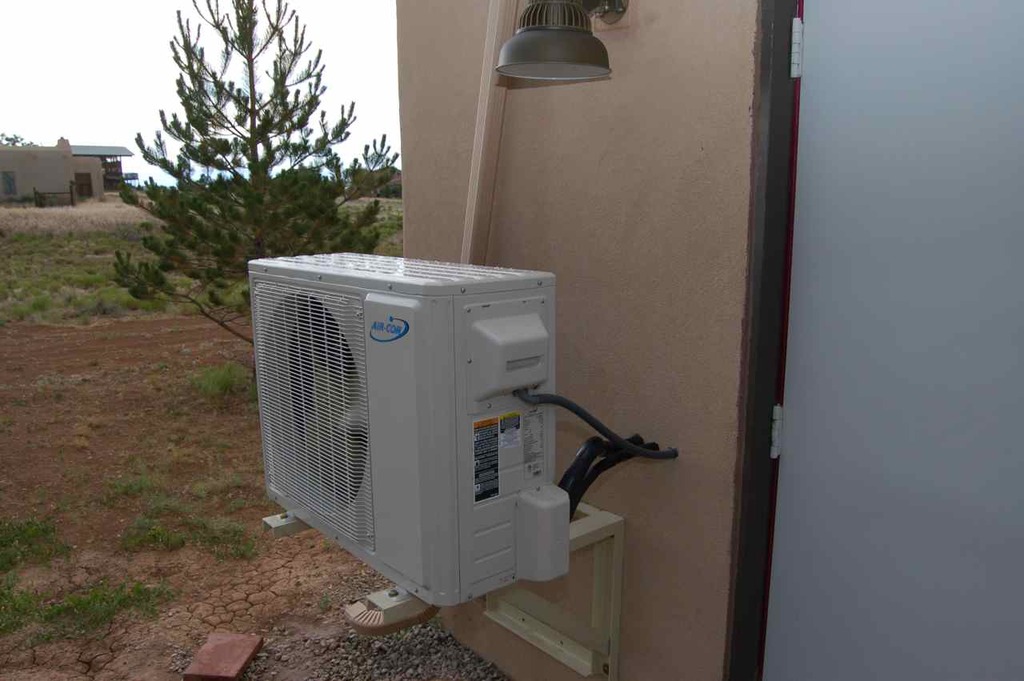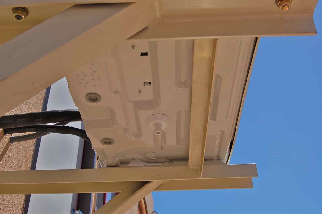The reason why elected to suspend this outside unit off the ground, is one, when monsoon season comes, that whole area puddles up pretty badly, and also sometimes we get hit with a good snow fall and the wind piles it up right there.
