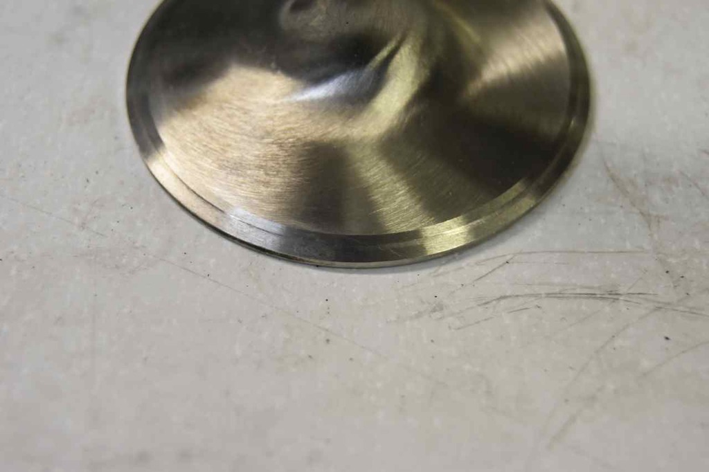 So this is the intake valve with 30-40 minutes of run time. You can see the actual contact area is not the entire face of the valve just a small hair or two worth of actual contact area..... no wonder why these things leak.