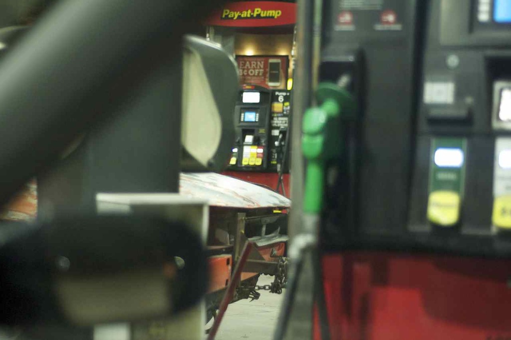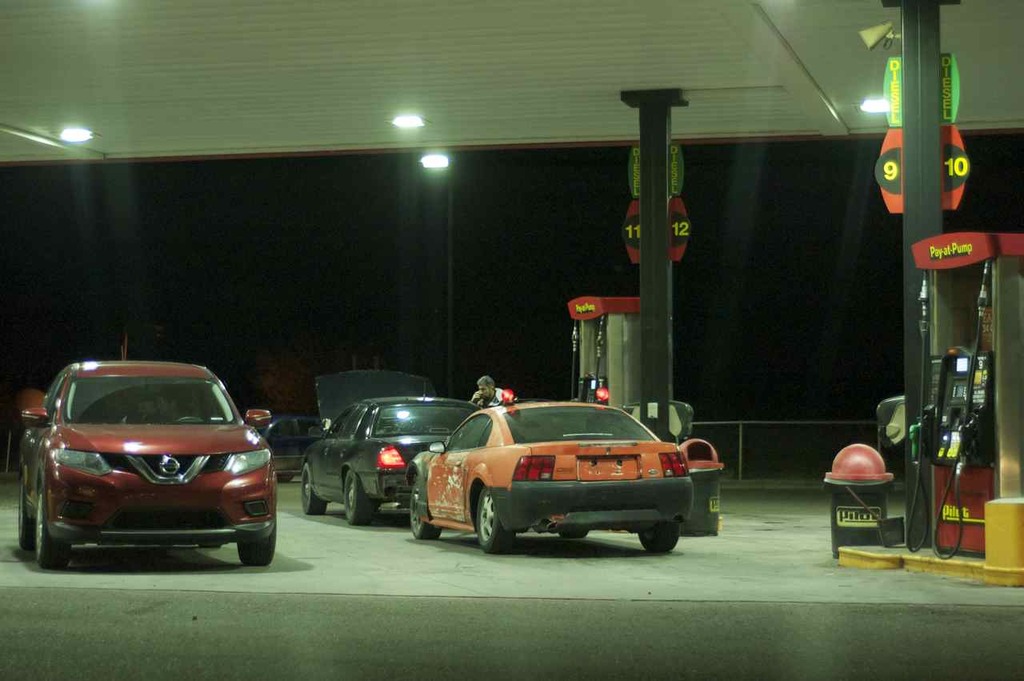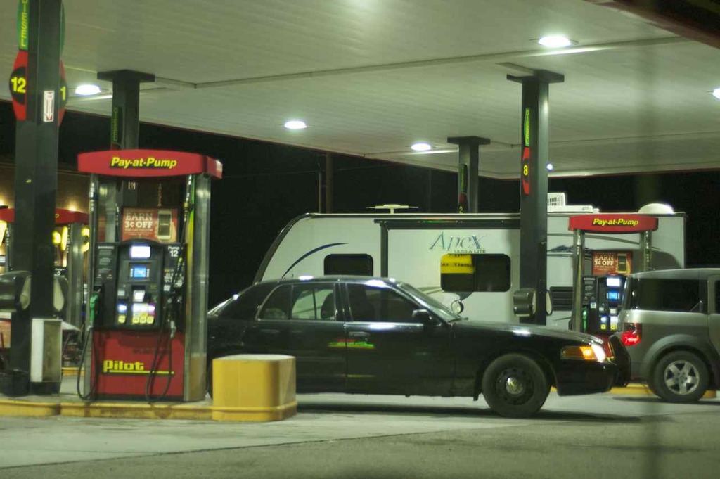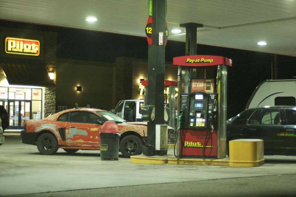 So we were at a fuel station the other week and this rolled in. I had a laugh at this and I just had to take some pictures. Don't get me wrong, this could easily have killed someone if the gas shocks in the Crown Vics bumper let go.