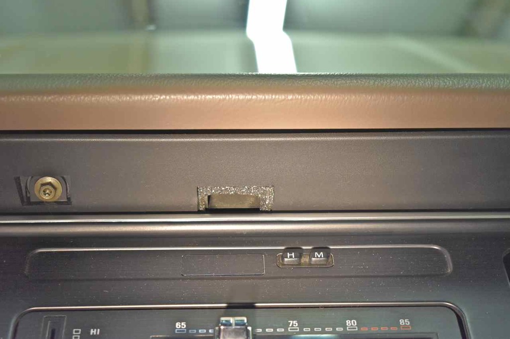 In case you're wondering where that hose ends up, it snakes around the instrument cluster and comes out above the clock and this is the suction to the blower motor. Right behind that opening is a thermistor sampling cabin air temperature. As this is suction it pulls in cabin air and gets a temp reading for the auto-climate control system.