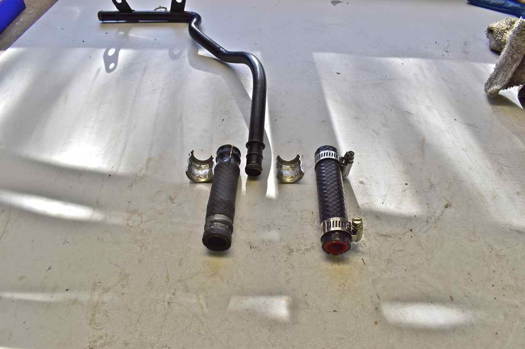 Old one off and new silicone hose with stainless hose clamps to go one (this will outlive me)