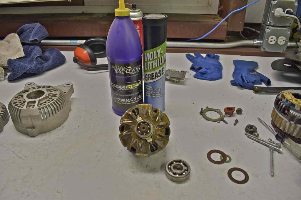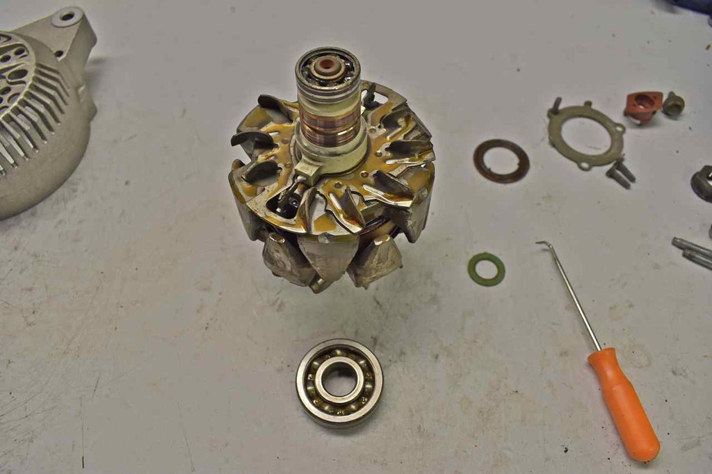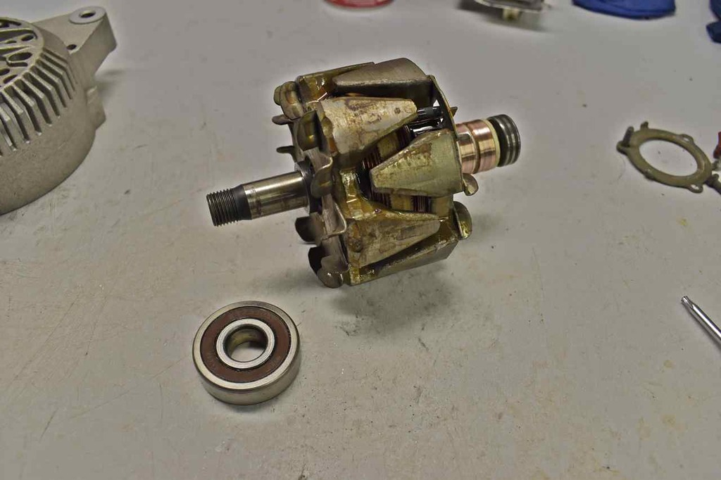 Because of the age and mileage (23 years old and 140K) spinning the rotor by hand reveals the bearings need fresh grease. Plus it's a good idea to see how much brush life is left.