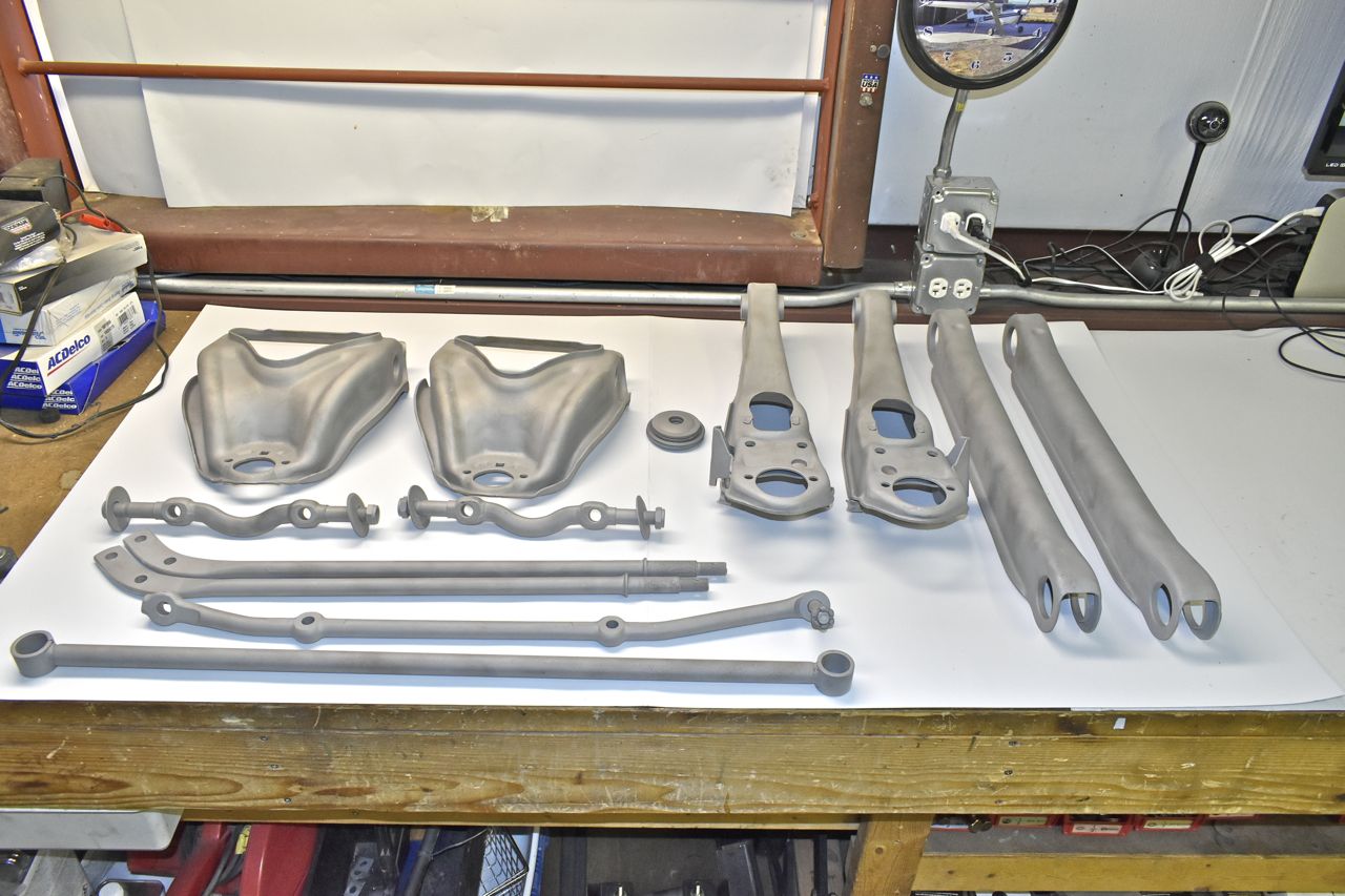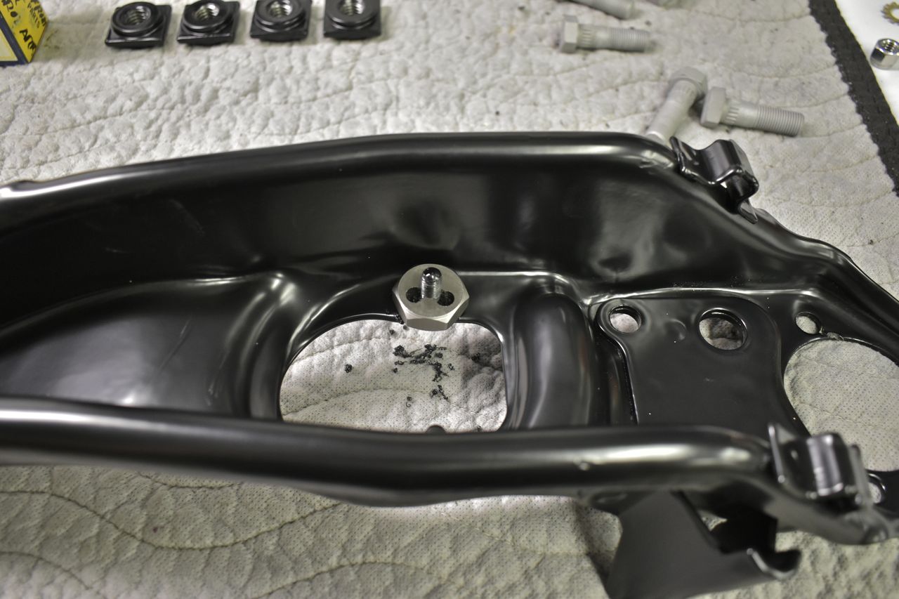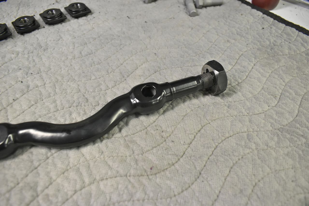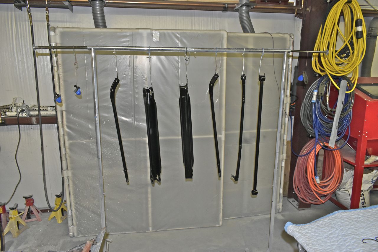 I chase the cured powder coat off the threads on the arms and pieces. Kind of tedious, but needs to be done. I also touch up areas on the arms where powder doesn't work into (Faraday effect) with satin black paint.