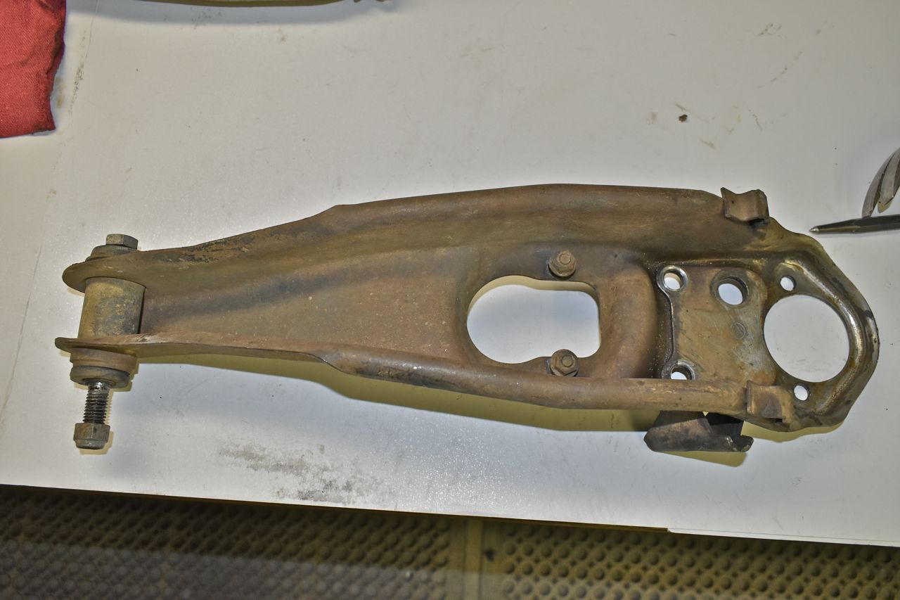 The uppers are dismantled in a similar way, on these since the heavy ball joint flange is atop the arm, you would want to drill from the top in order to save drilling into the arm itself.