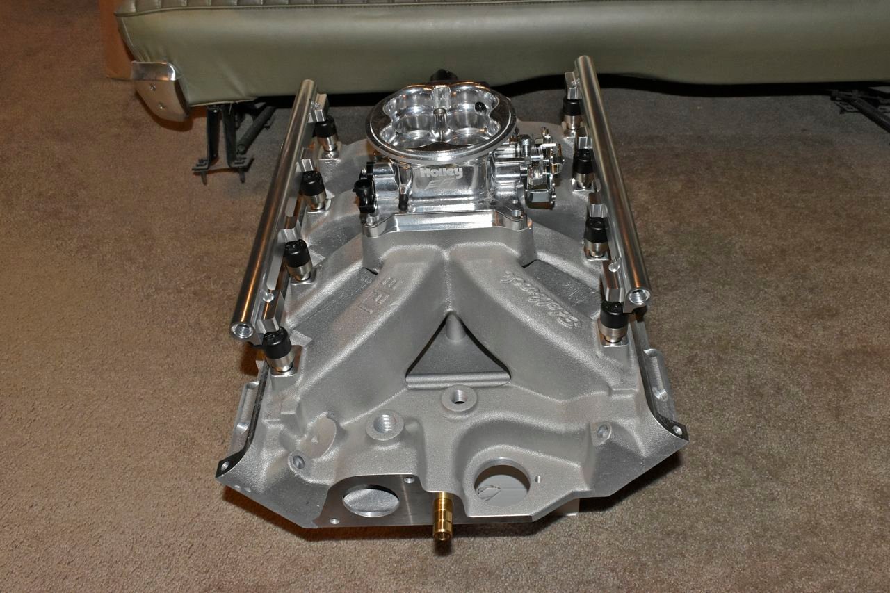 That's why I like the Edlebrock EFI FE intake idea (be nice to actually use something with even minimal work such as mild port matching) and use the Holley throttle body assembly atop and load it with appropriate sized injectors. Both Fords have two 3/8" stainless steel fuel lines plumbed from the fuel tank to the engine compartment (did that with the bodies off the frames).