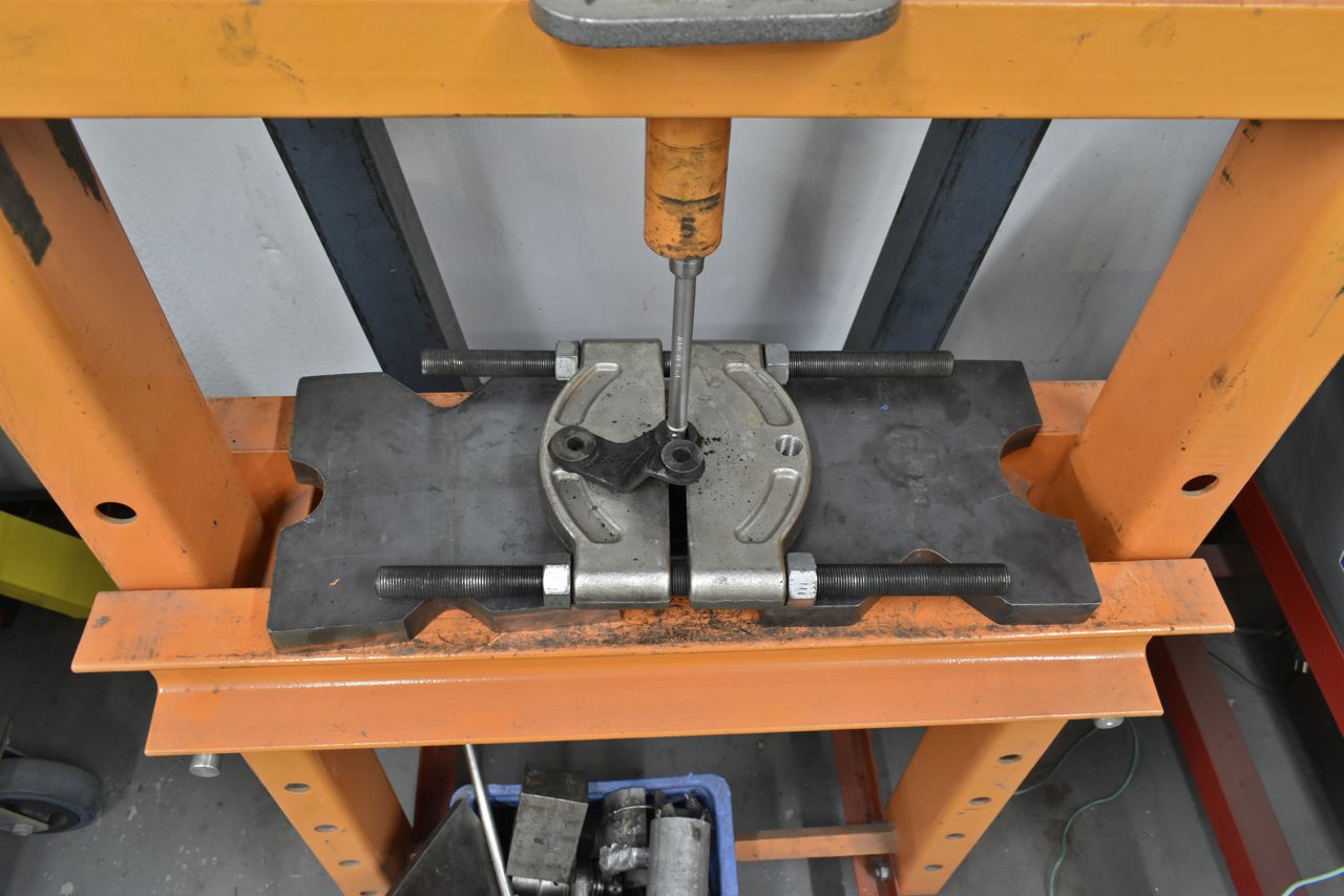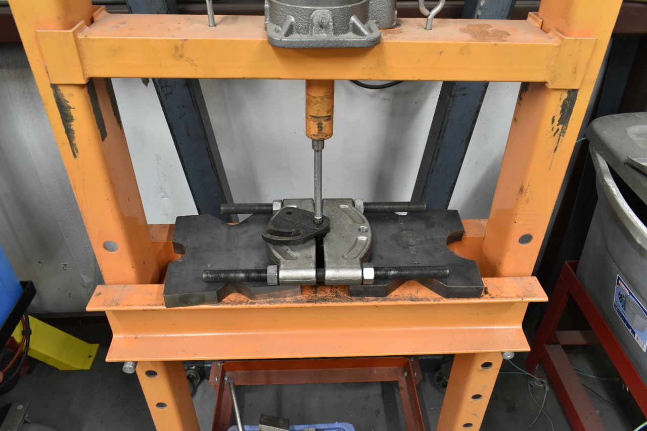Next is press out the old pulley/bearing assemblies from the cast iron bases.