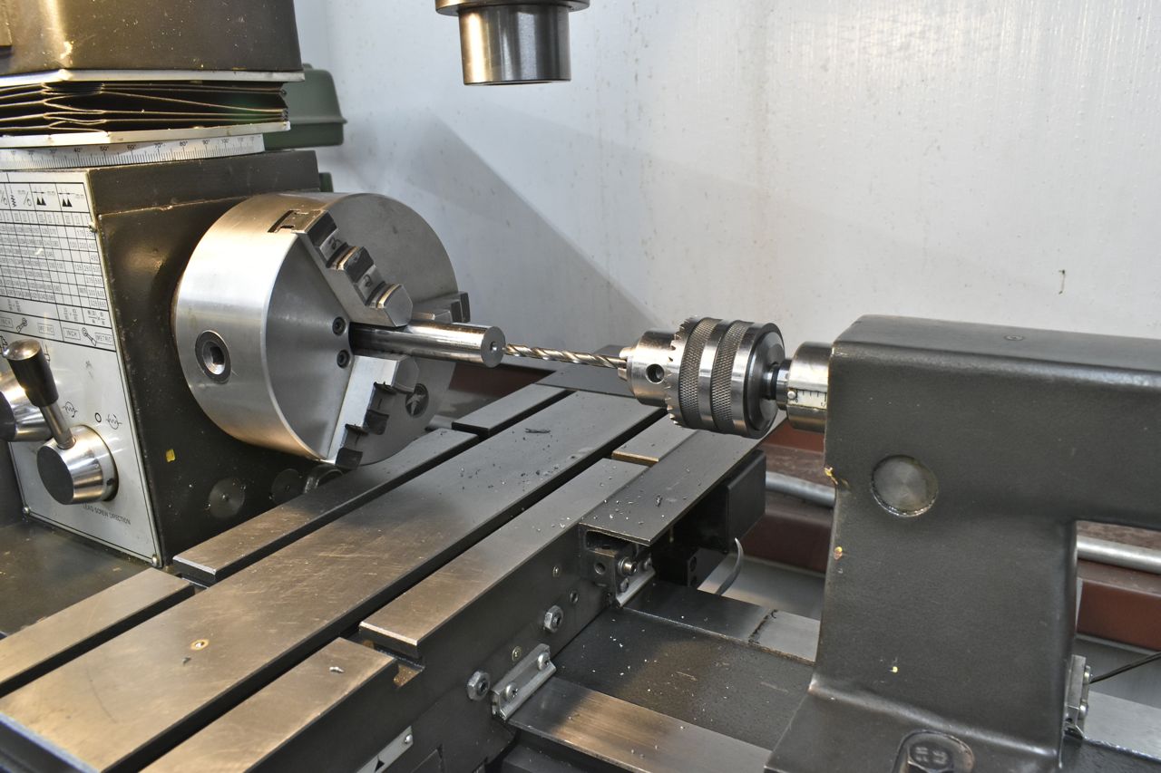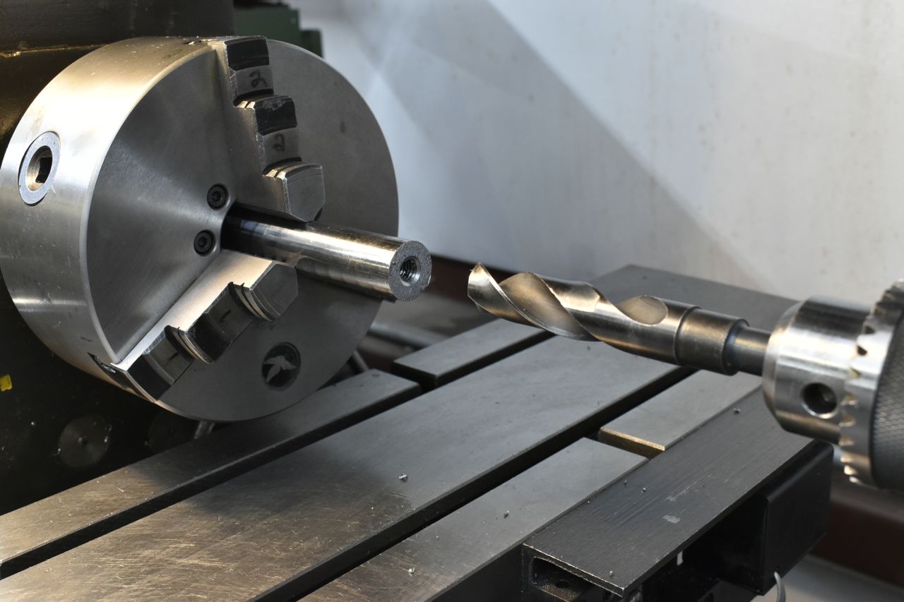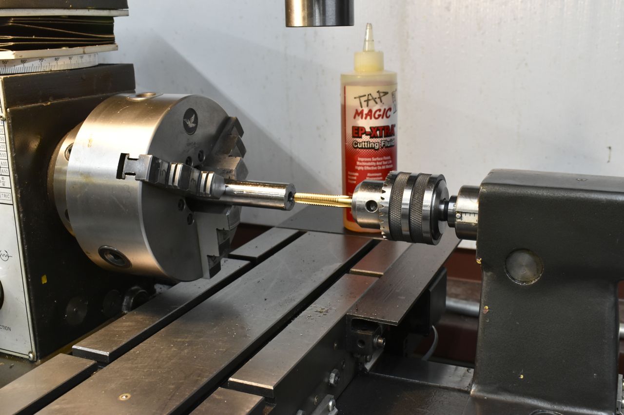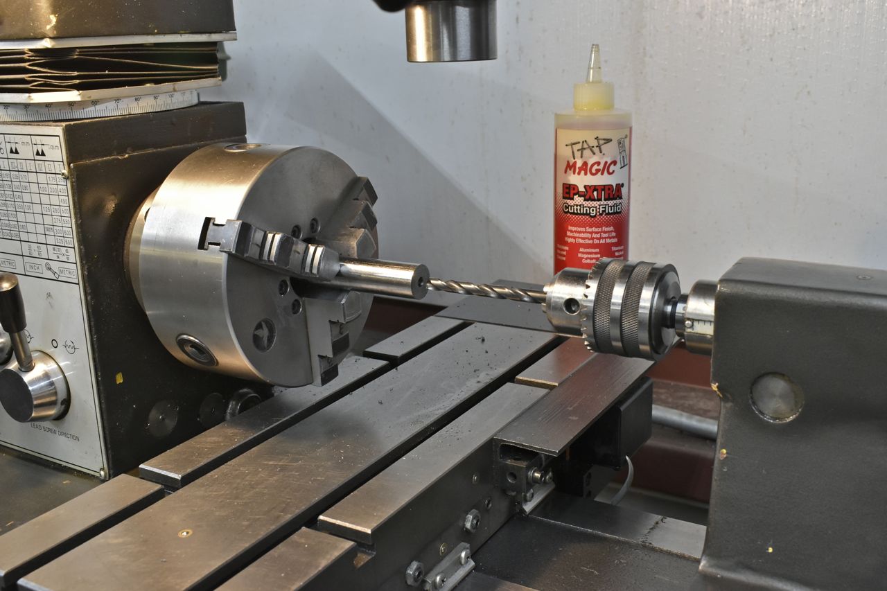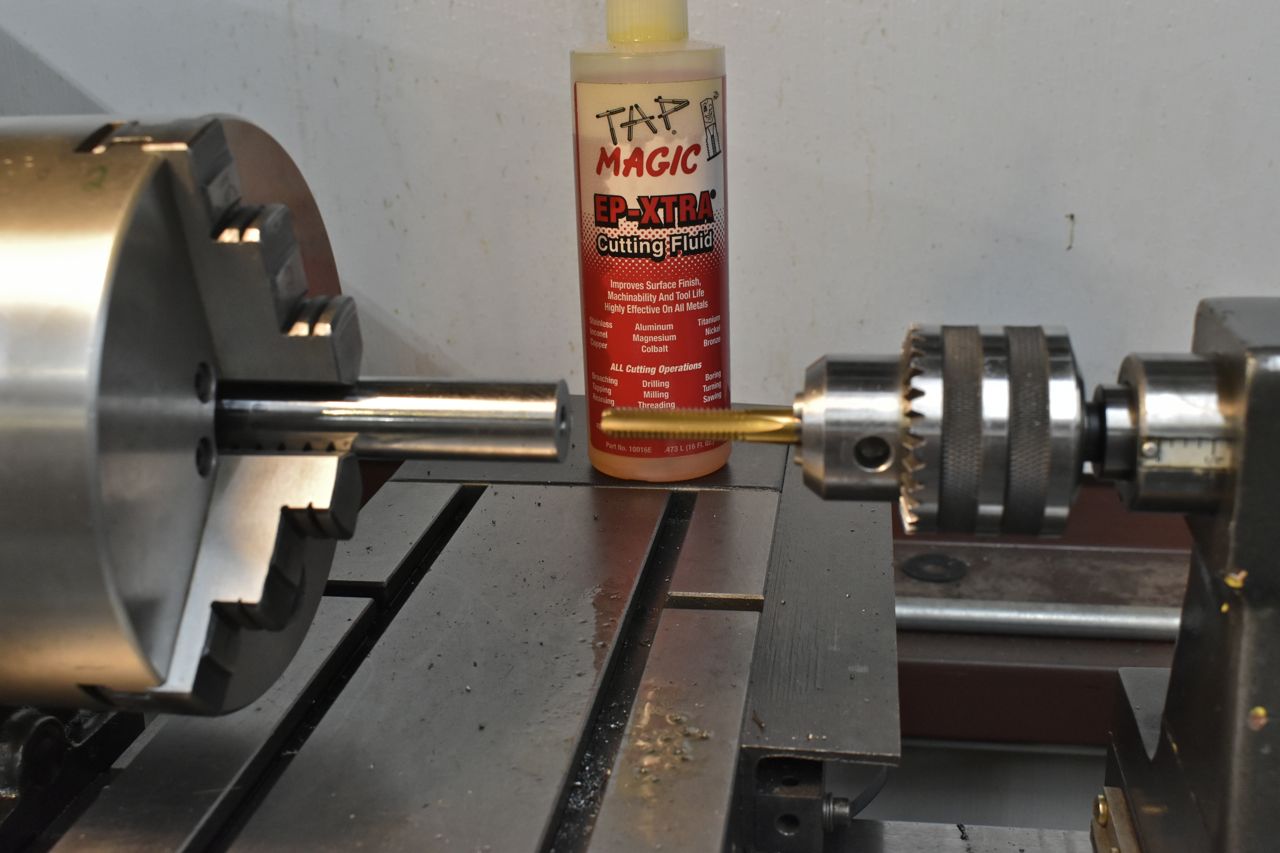 Drill and tap for 3/8-16. I start with a brand new 1/4" drill bit. Mind you at 3/4 hard this shaft is tough and dulls tools pretty quickly.