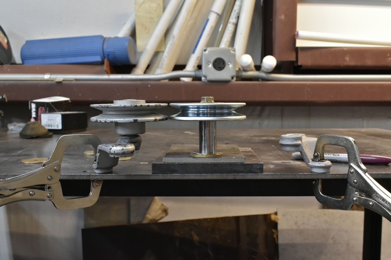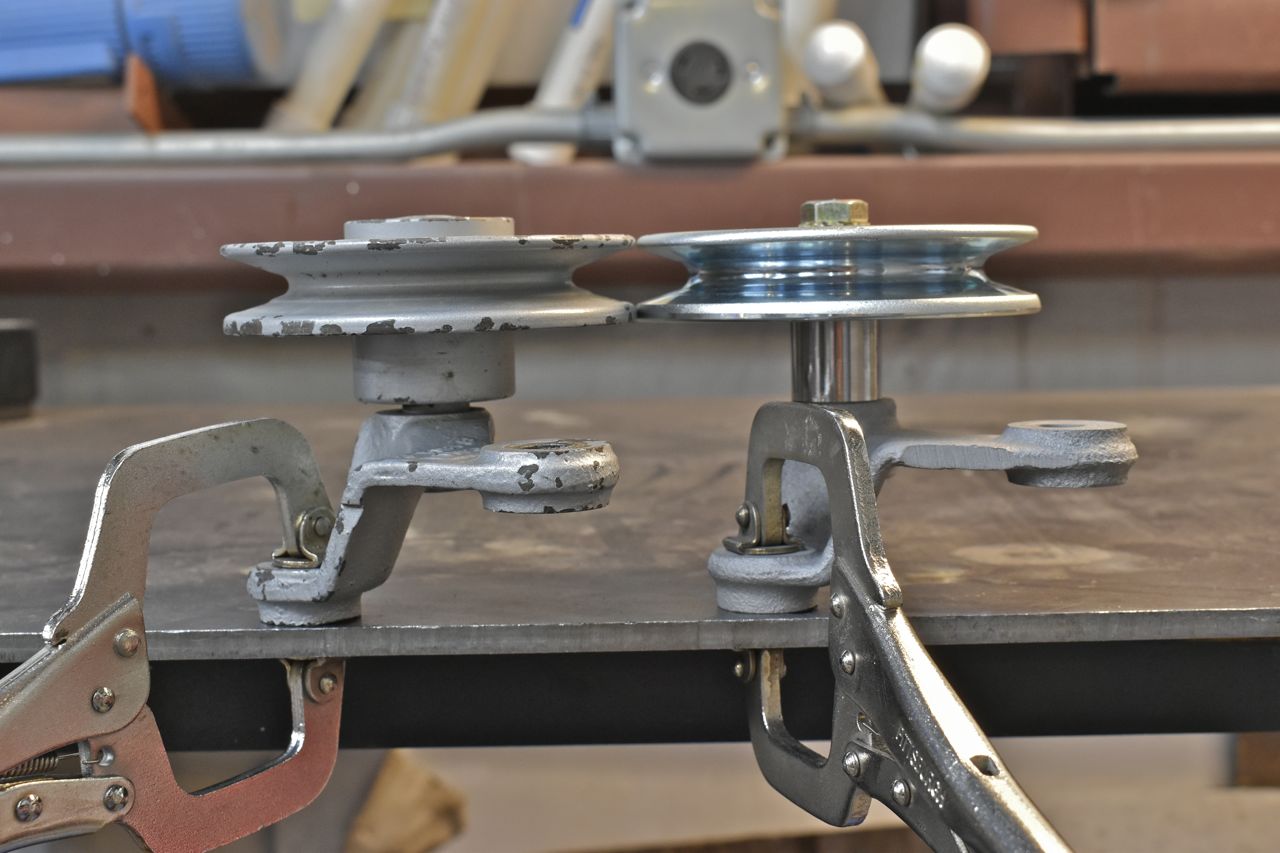 And there it is, rebuilt pulleys of which are now easily either replaced as a whole or just the bearing, which is a standard common bearing.