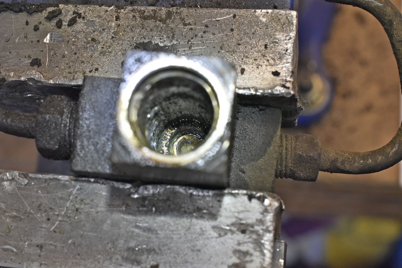 This is the rear brake proportioning valve from the assembly. It's just packed with crap.