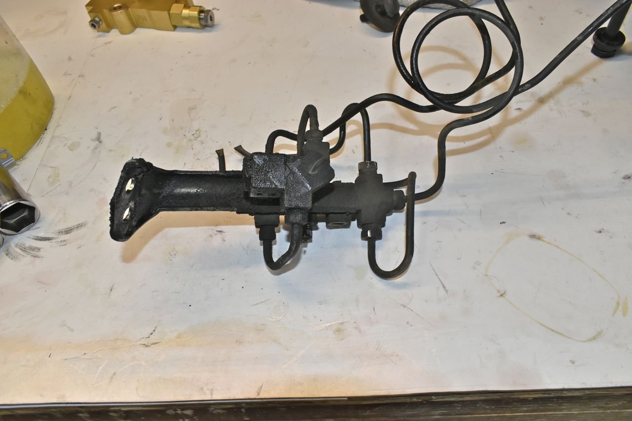 Now for this nightmare. In no way am I using this. In fact this one was leaking fluid out the rear proportioning valve. Now I do have used one that I put together and whilst it's functional, there are special moulded seals in this and they are old, even in a functioning one. Unless you have a show car, it makes no sense to use a specialized part you can not get parts for. So I decided on using a very common reproduced GM combination valve in lieu of this unique Ford valving.