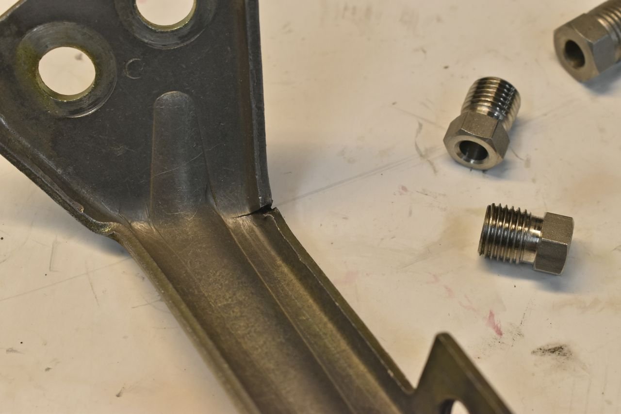 You can see from the stamping then vibration the original bracket has cracked. I have 4130 TIG rod I can bolster this with.