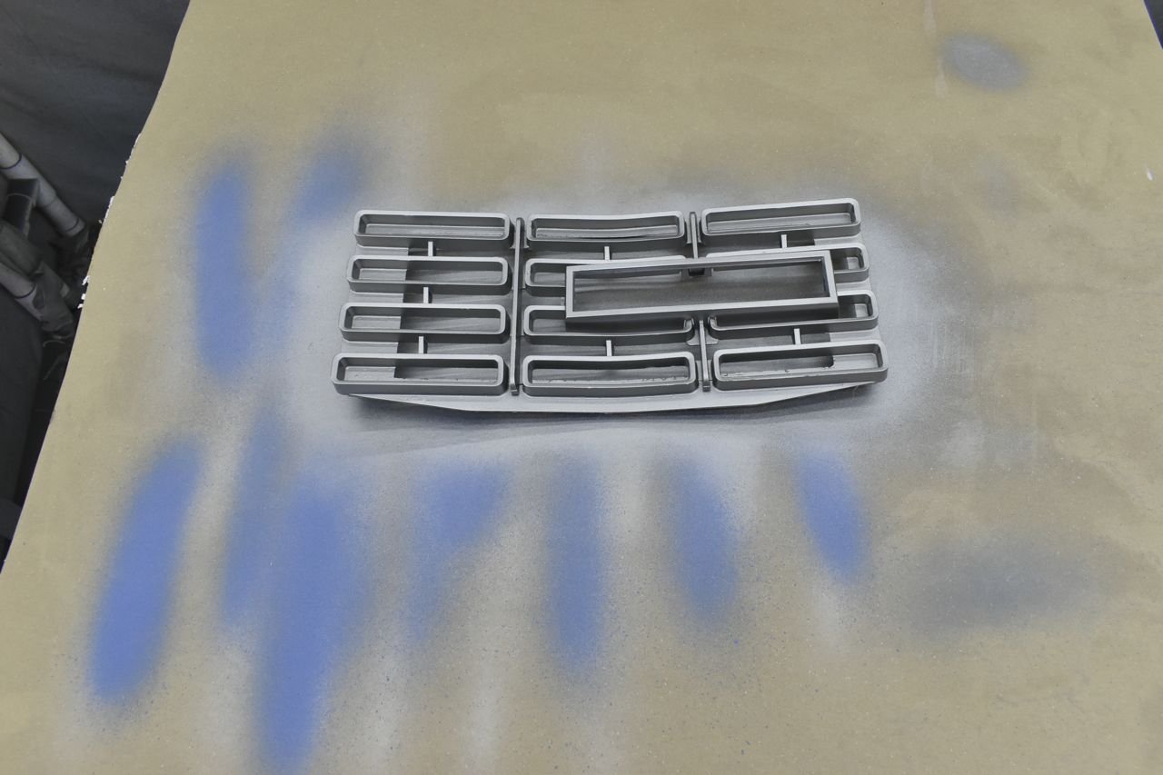 After that, I wiped off the silver paint from the chrome face and then hand masked the protrusions so I could spray the bottom flat pieces semi-gloss black. Holy crap I'll never do that again. The masking tape didn't work so well because of how intricate these grills are.
