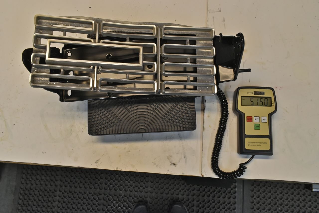 This is the weight of the metal back bracket and the grill. Just over 5 pounds! That's 10 pounds worth of doors the vacuum servo has to raise and there's no weight compensation spring as found in a window regulator.