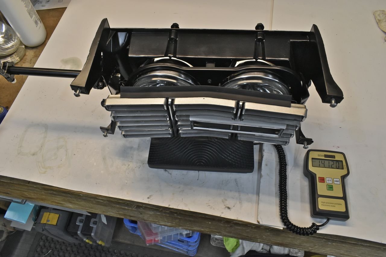 For fun I measured the whole lamp assembly. Over 14 pounds! I bet the entire hide-a-way headlamps with the massive die cast grills, servo, hoses and tank easily add 40 pounds to the car. That's a bit much.