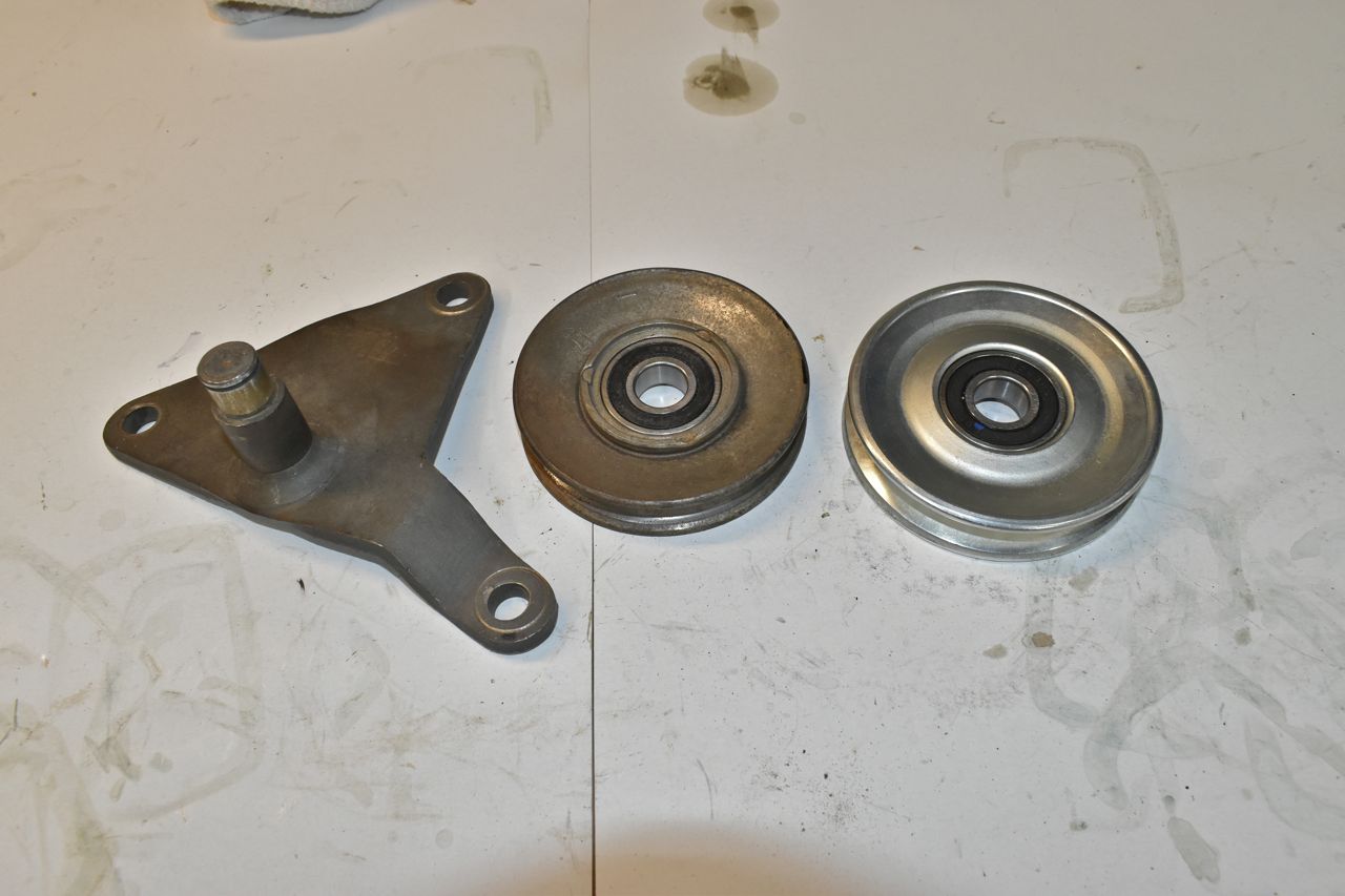 And it begins. This wasn't on my already lengthy list of things I found wrong, but I was just barbequing some steaks on the grill and since the grill is right by the garage I was looking over the engine compartment on the XL whilst waiting to flip the steaks. It was then I noticed the tensioner pulley assembly was replaced but it still was running an old idler pulley. That sent shivers down my spine. So next day I removed both the tensioner and the idler and sure enough the idler was on borrowed time. Whilst it spun, you could hear and feel the ball bearings and races were galled and there was just no lubricant in it. This was a few months from failure, especially a hot summer month with the A/C going.