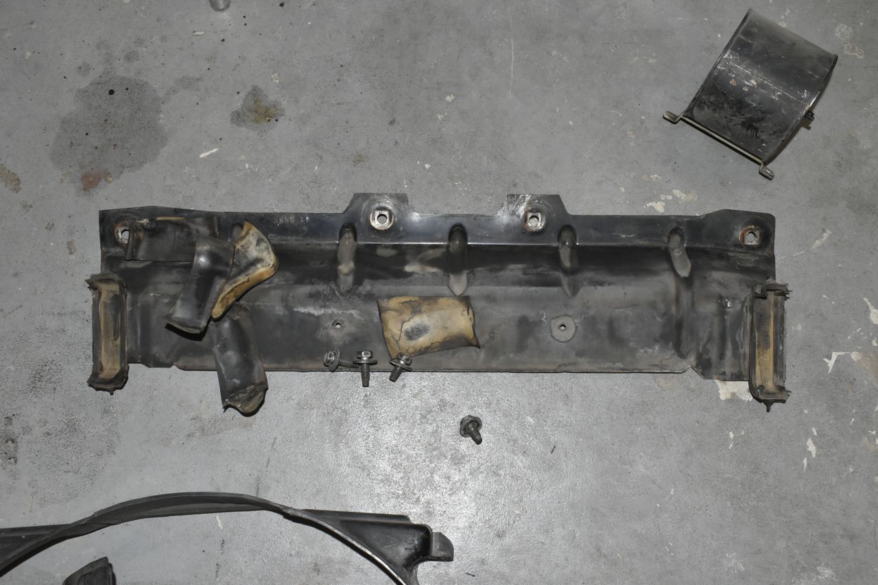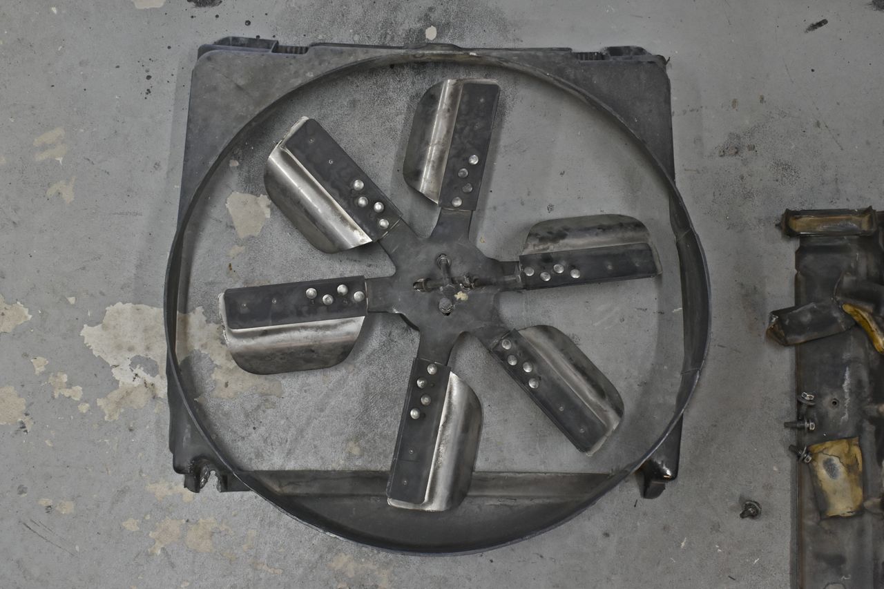 And the fan and shroud that was on the car. Now the shroud is the correct shroud, but it's broken. The fan is about 2 sizes too small and way to flex-o-matic for my liking.