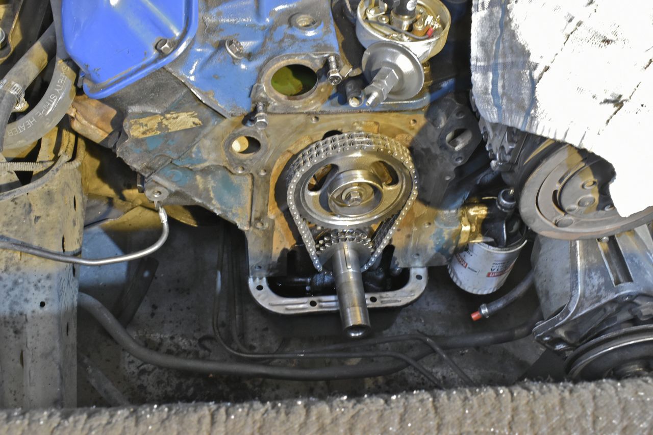 Timing cover installed, spacer installed and key.