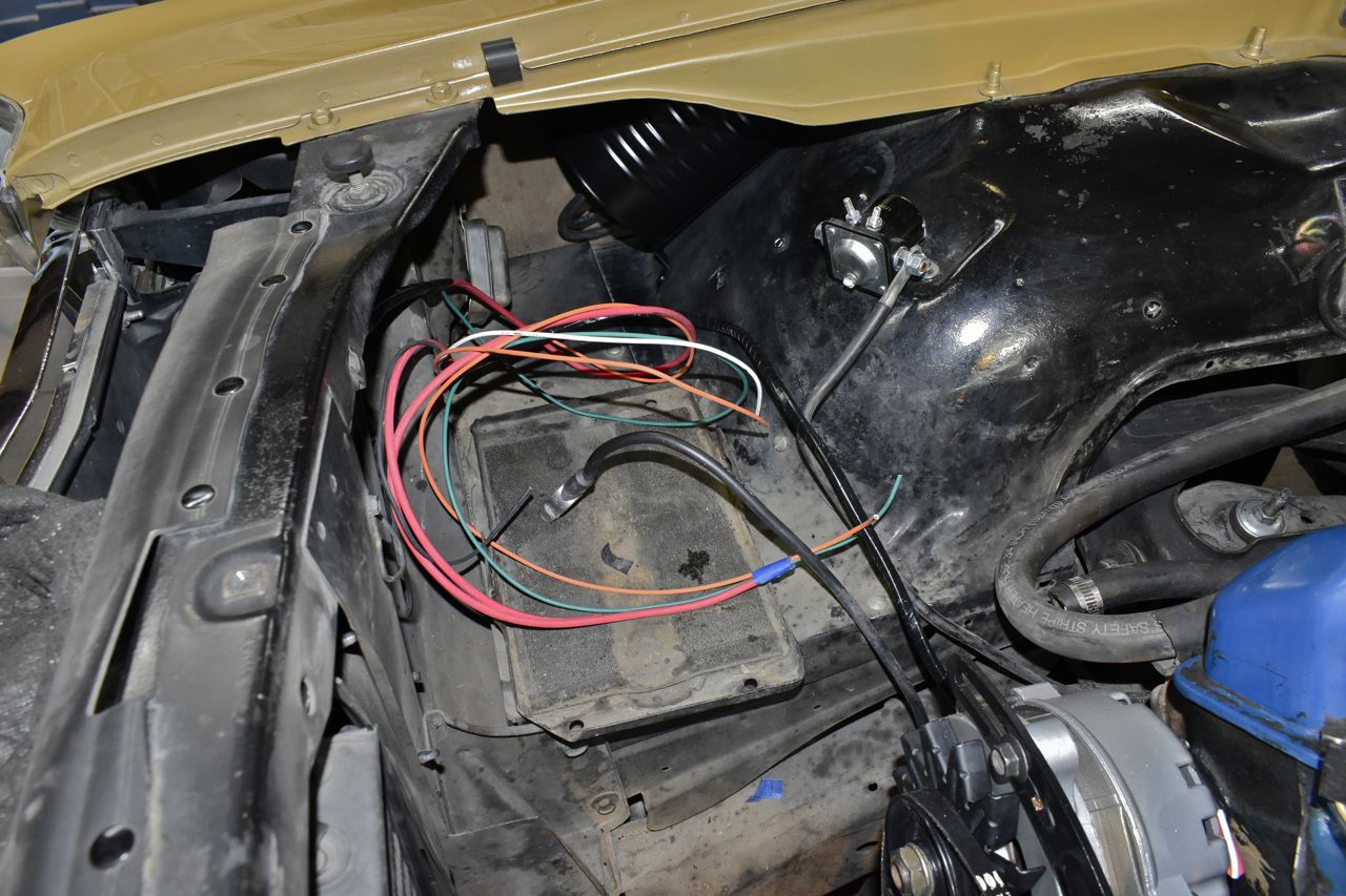 That main feed, "ALT" lamp and starter wire were taped and run across the header over to the battery area.
