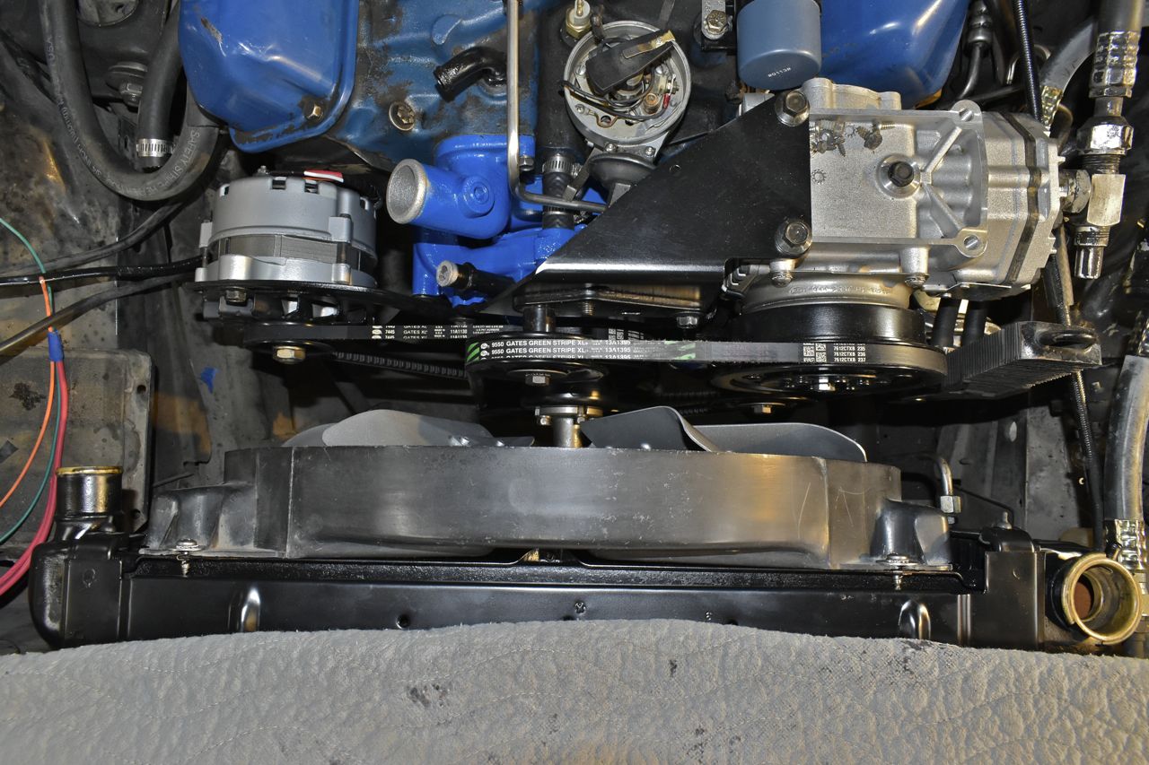And the fan, shroud and then tighten the V belts.