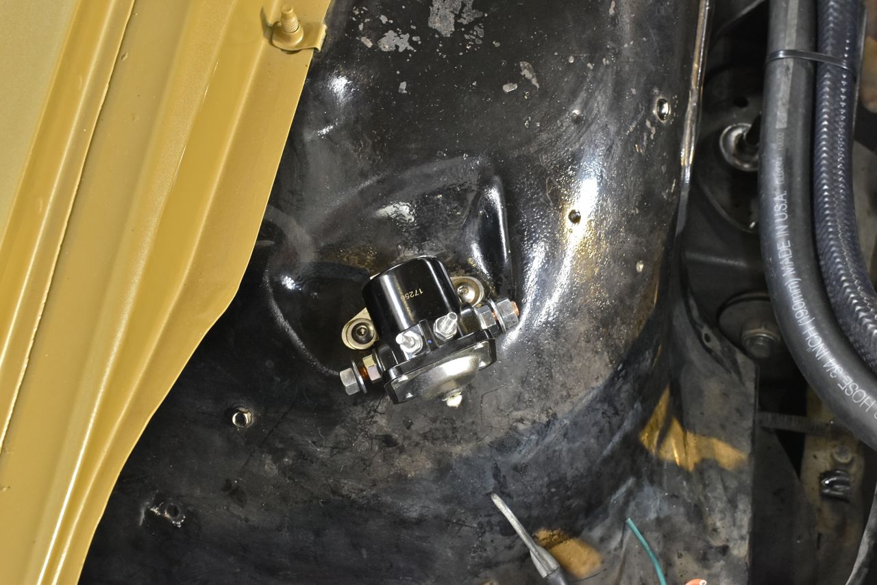 The sheet metal screws holding the starter relay down were stripped so this was loose. Well there's a potential no crank problem. I just drilled for 1/4 and used stainless nuts and screws.