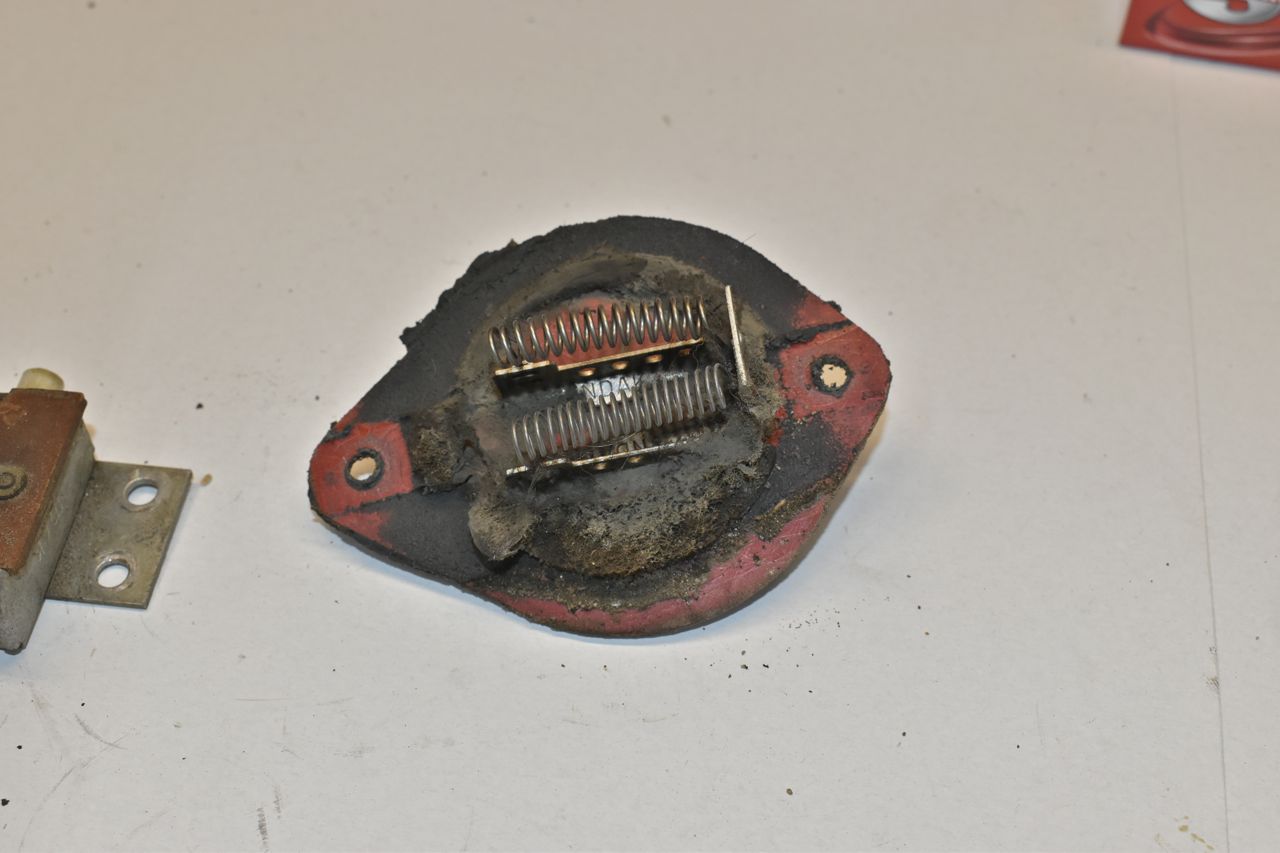 I walnut blasted the blower resistor. What a difference. Next to it is the clutch A/C mode switch. It opens the switch to shut off the compressor clutch in heat mode (floor or defrost).