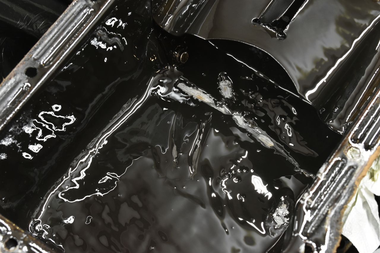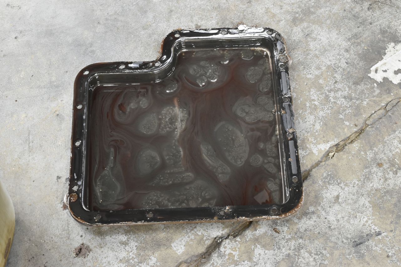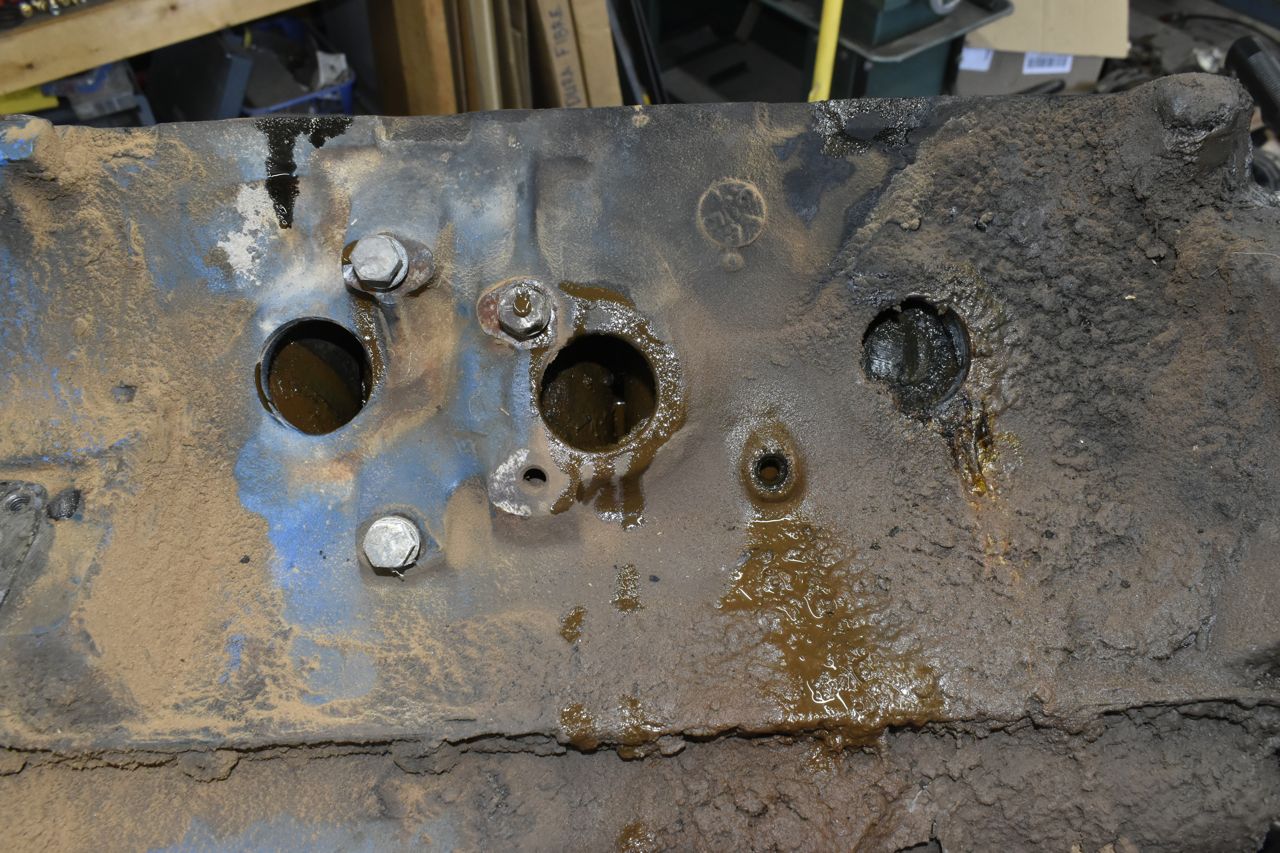 The engine ran most of its life in the leaded fuel era as the bottom of the oil pan still has about 1/8" of a gray lead slurry and there's lead slurry on most of the other parts.