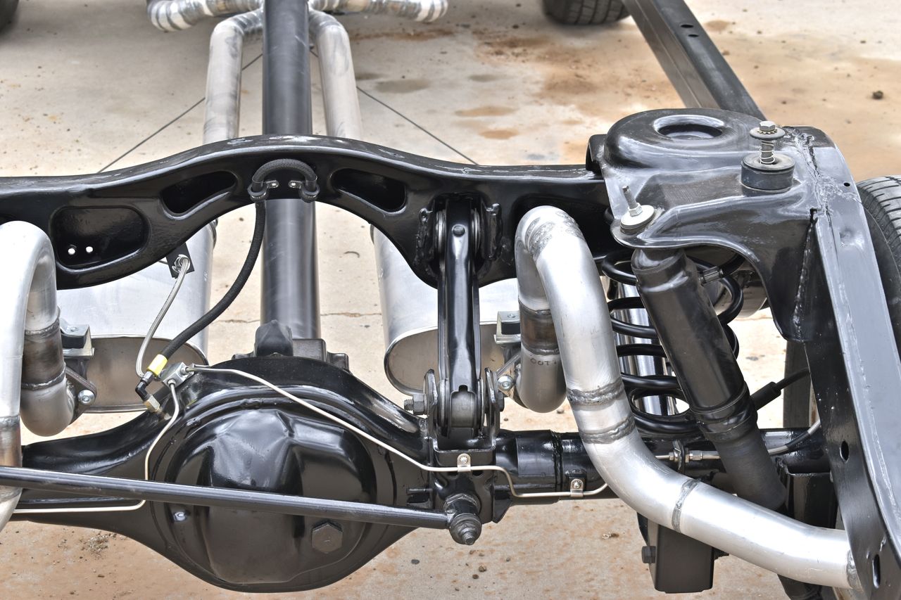 The cables pass through holes in the rear torque box/control arm attachments and then to each wheel. The rear left and right cables are the same.