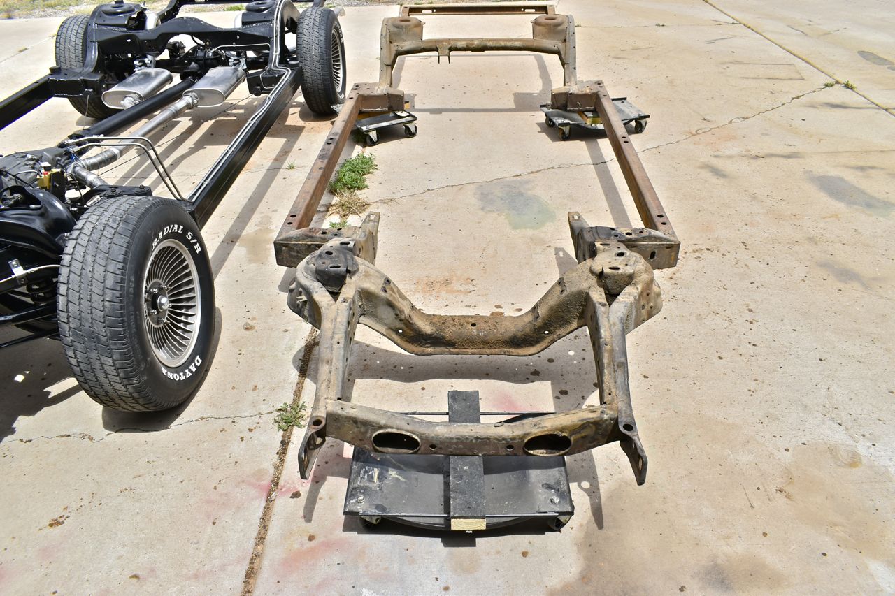 It isn't everyday that a photo comparison of two 3rd gen frames is possible. But since I was going to dispose of the 1968 frame with rust holes I had a chance to roll out the completed '66 chassis for a visual comparison to those whom might be interested.
