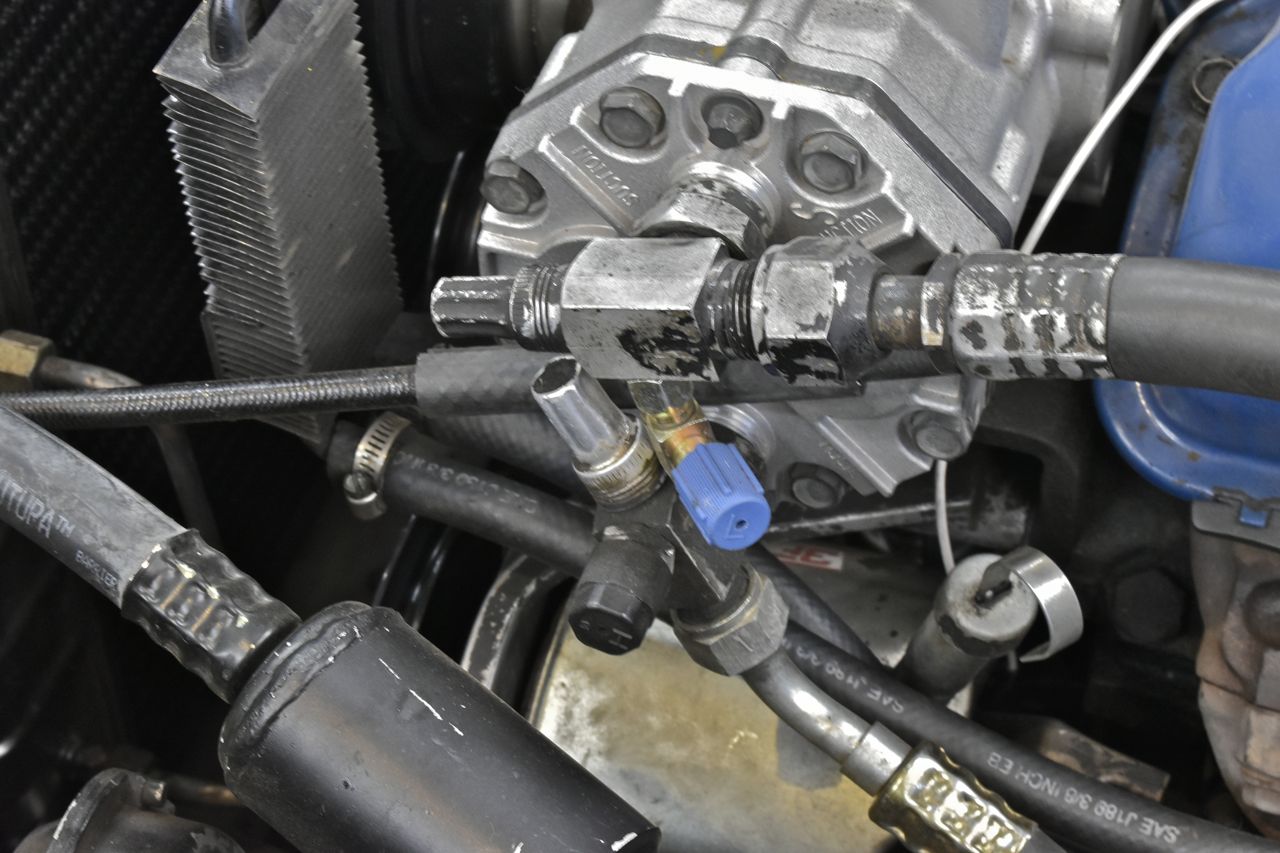 Get a load of that shoddy R134a conversion and high side hose replacement. It's sad how so many have no pride in doing a good job anymore.