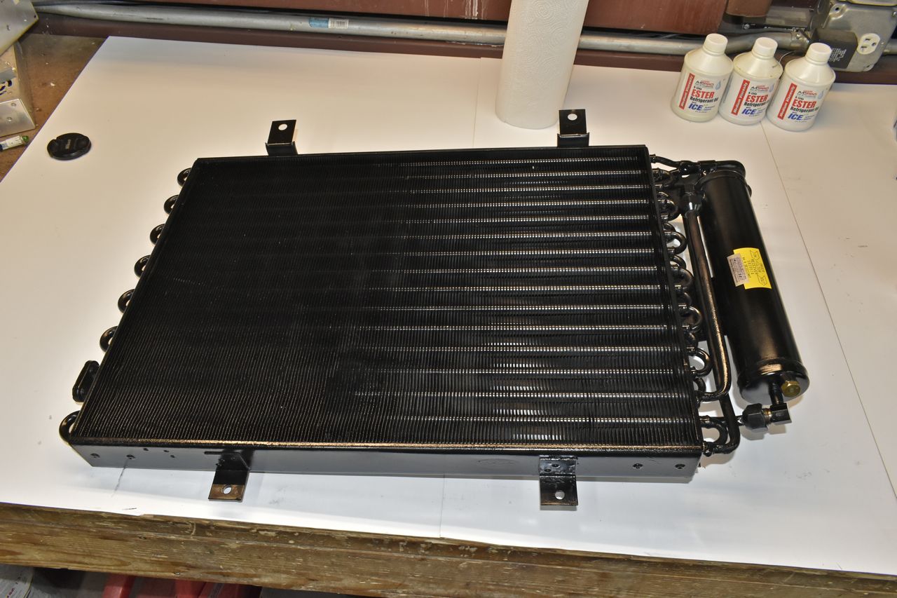 It took me hours to scrub that baked on tar like oil off the condenser. I used acetone, brake clean, IPA and a propane torch to clean this thing. I did flush out both circuits internally with acetone and pressurized air till both circuits were clean.