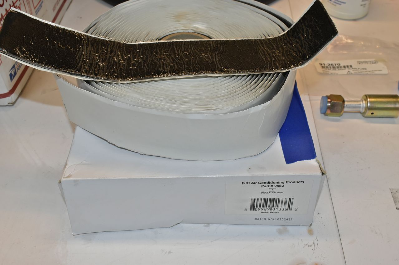 Now instead of using that nasty tar to insulate the sensing bulb on the expansion valve I use this specific tape for this purpose. It's not correct looking but it's more civilized than nasty sticky gooey tar.