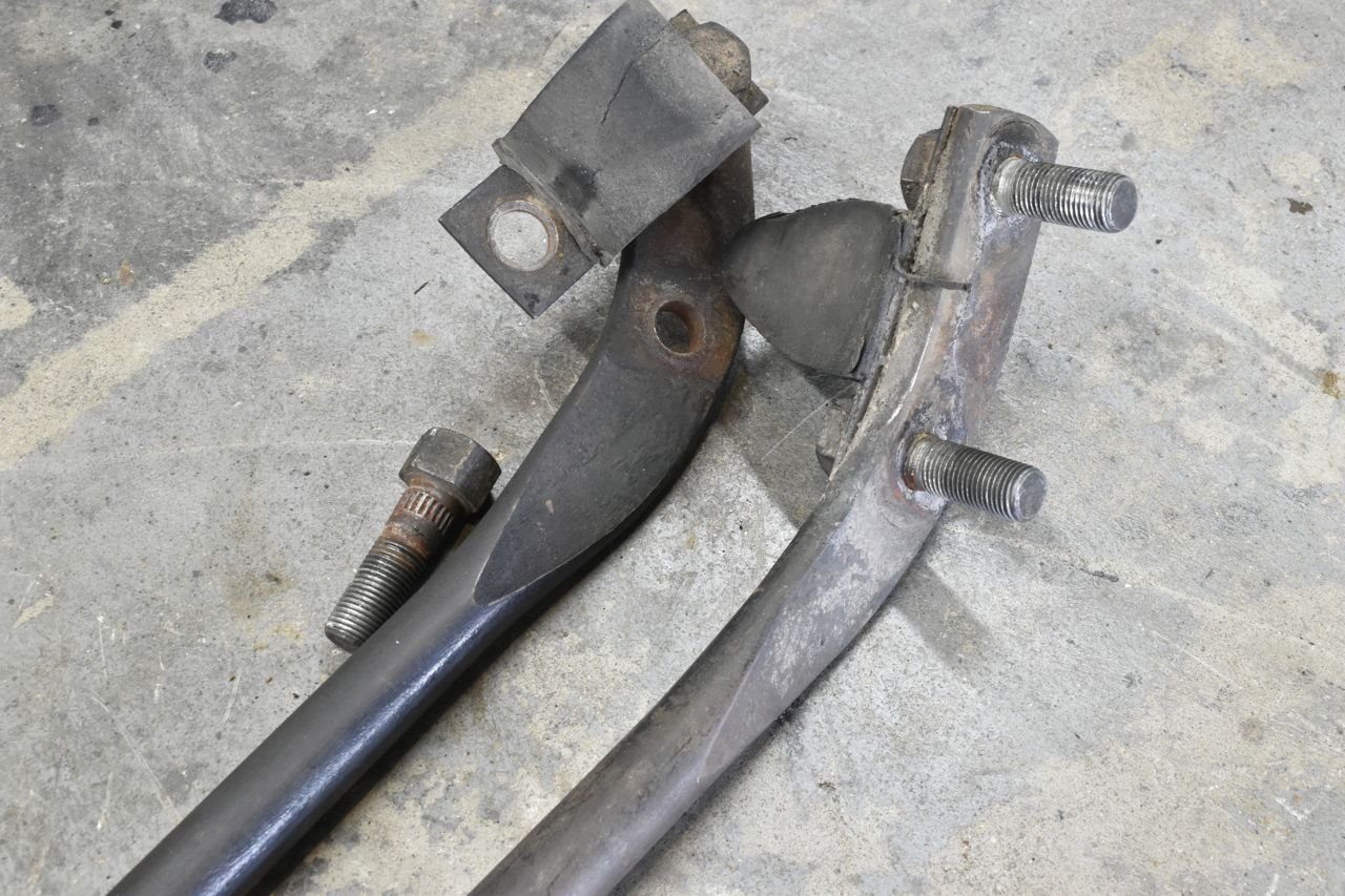 So the middle bunch is what came off the car and I am having trouble wrapping my head around these parts as the outer bushing needs to have a recess to accommodate the frame bump out and these do not.