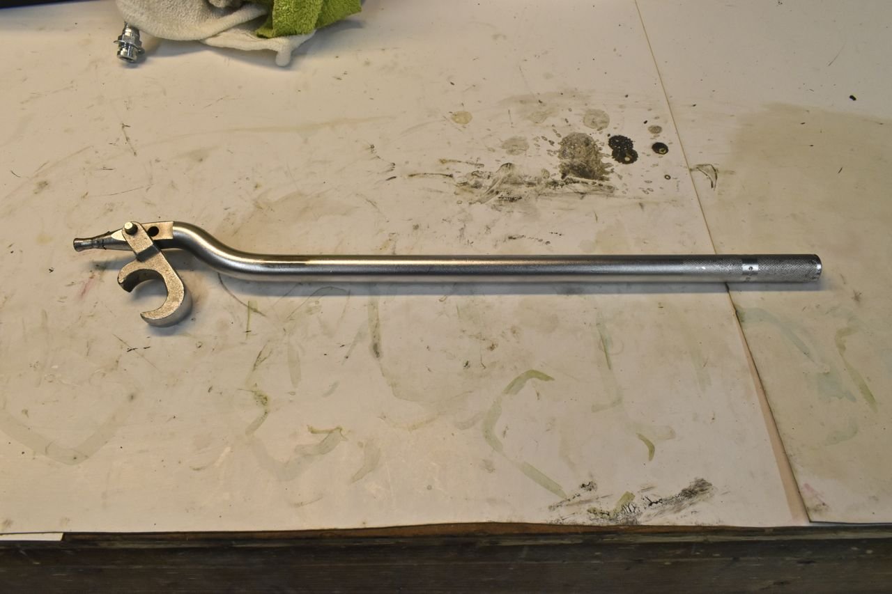 This is one of the tools specifically for 3 and 4th gen full size Fords to adjust the upper control arm. These cars do not use shims, you just loosen the bolts and move the arm. I bought this several years ago when people were dumping their old alignment stuff for cheap. I think this was ~25 bucks shipped. Now you can't find this stuff and when you do, you need the jaws of life on the wallet.