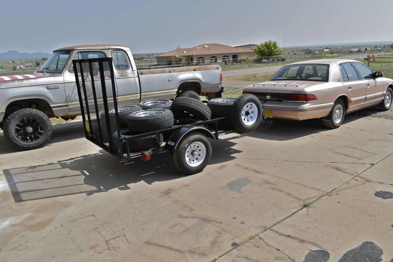 I think that was the most tyres I've lugged to the store to have changed. The astute will notice we have a truck and yet the Mercury is doing the work. The more astute will notice the reason for this: truck is a Dodge.