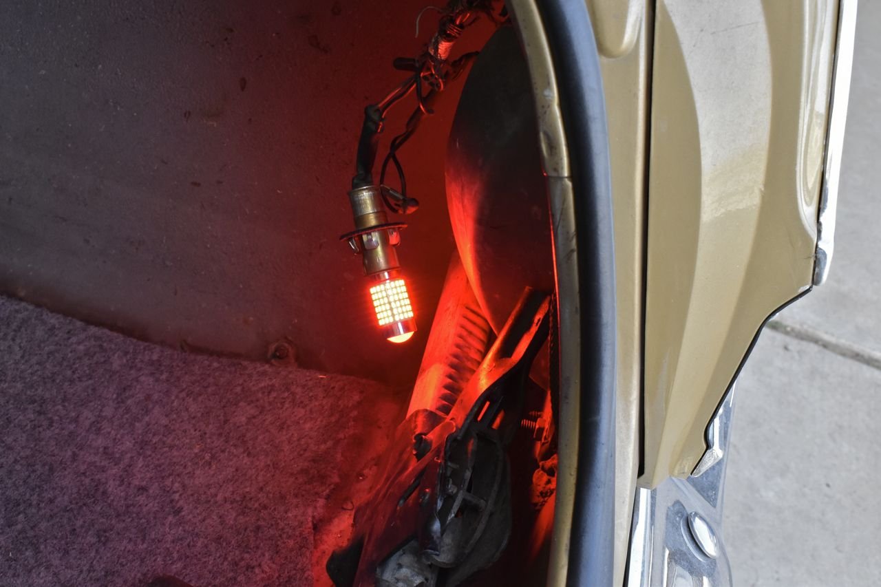 I bought these off of Fleece-Bay awhile back and they are very bright and very Star Trek Deep Space Nine looking, which is probably why I like them so much. Those are all little LED's around it with a big LED under the forward lens. Bloody thing is very bright. I had to adjust the photo otherwise it was just a saturated blob. Also because the LED is red the tail lamps are really a cool looking red now. They were more pinkish with a brand new 1157 compared to these.