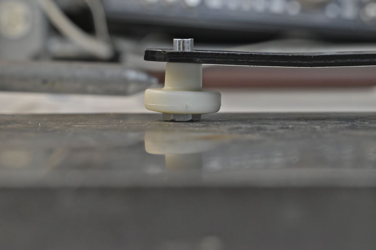 The key here is using the base plate off the Ford pick up power regulator. There are two problems with it that require modification. First the mounting holes are in the wrong position and it has no threaded portion in the base plate. This is easily fixed with weldable threaded bases (Mcmaster). The second problem is the base has no provision for a counterweight spring. With that the base has to be cut out of the old manual regulator and welded in the centre of this one to hold the reference standoff for the spring solidly.