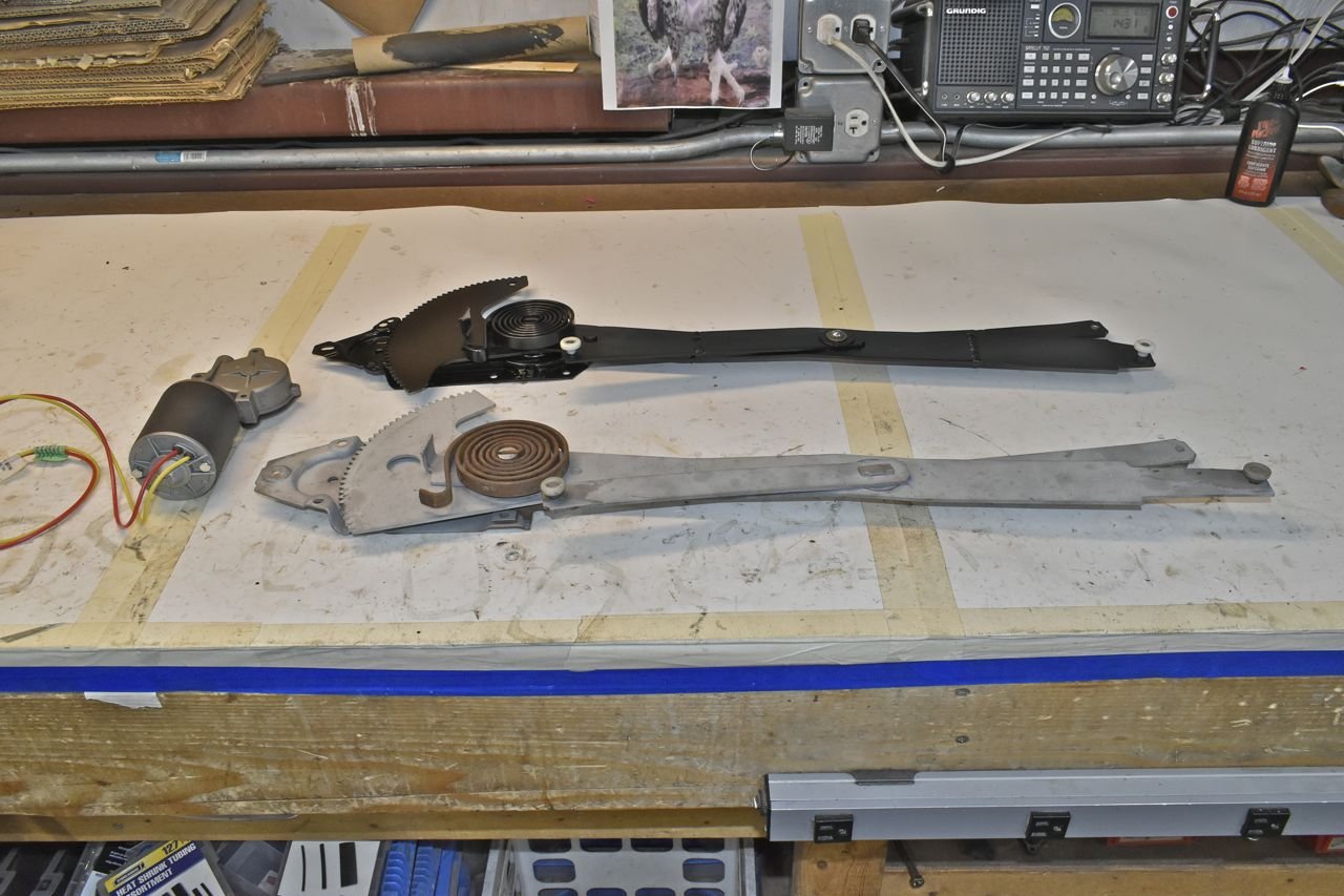 I had envisioned trying to make a power window regulator similar to the OEM power regulator from manual winder regulators and whatever newer ones I found. I saved a bunch of old Ford manual winder regulators; about 70 pounds worth of them for this purpose.